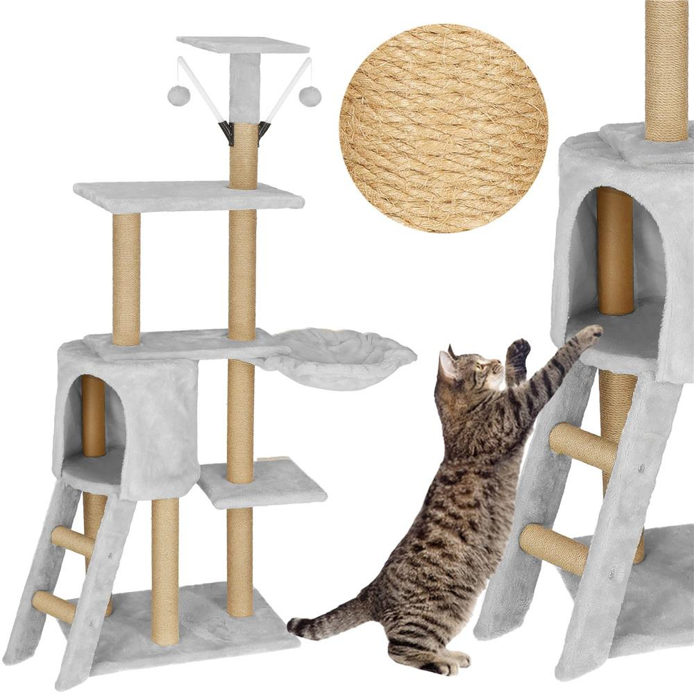 Ansamblu de joaca pentru pisici, cu loc pentru zgariat, ascuns, culcus, soricei, 136cm, gri
