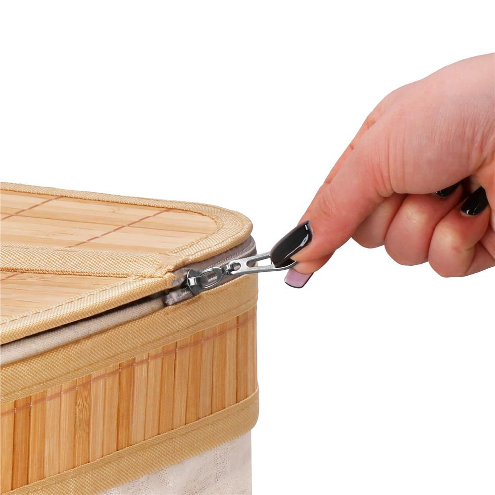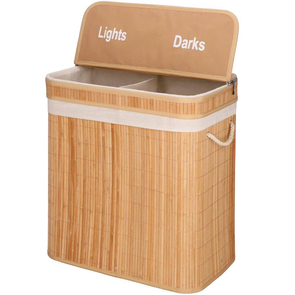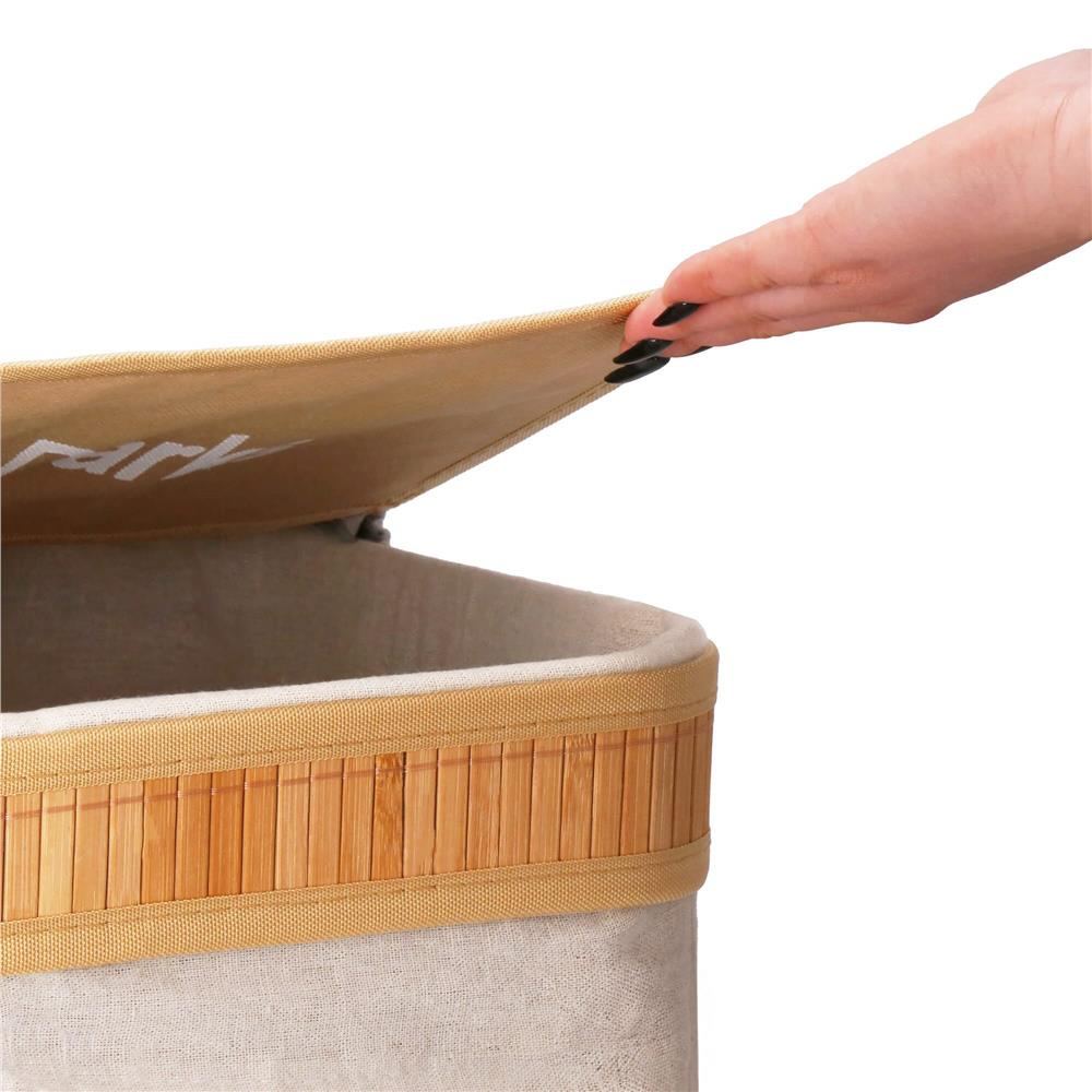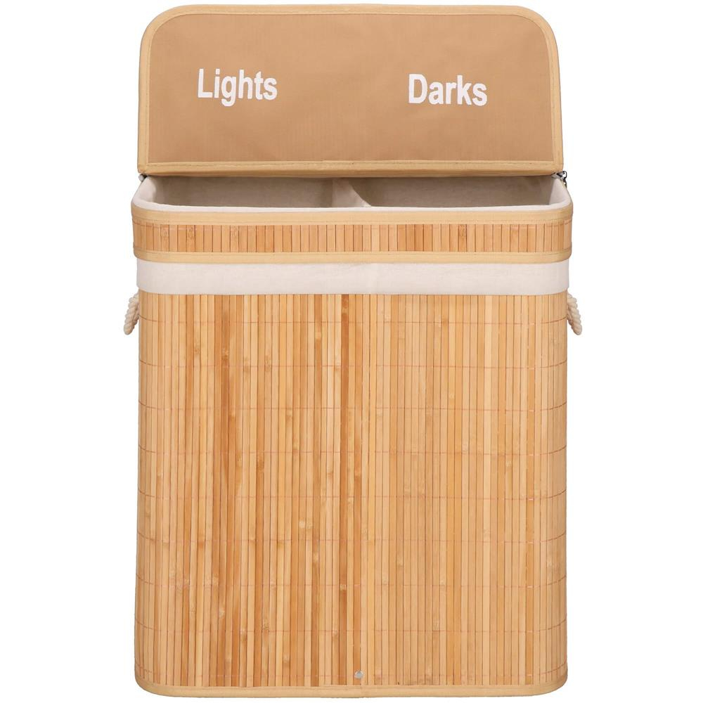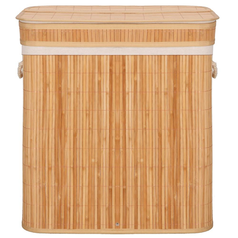 Cos de rufe din bambus cu capac, 2 compartimente, sac detasabil, volum 100L, 53x32x62cm, maro
