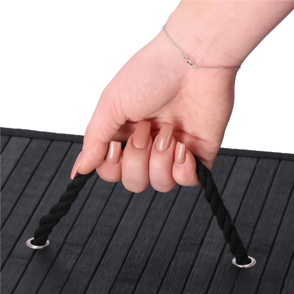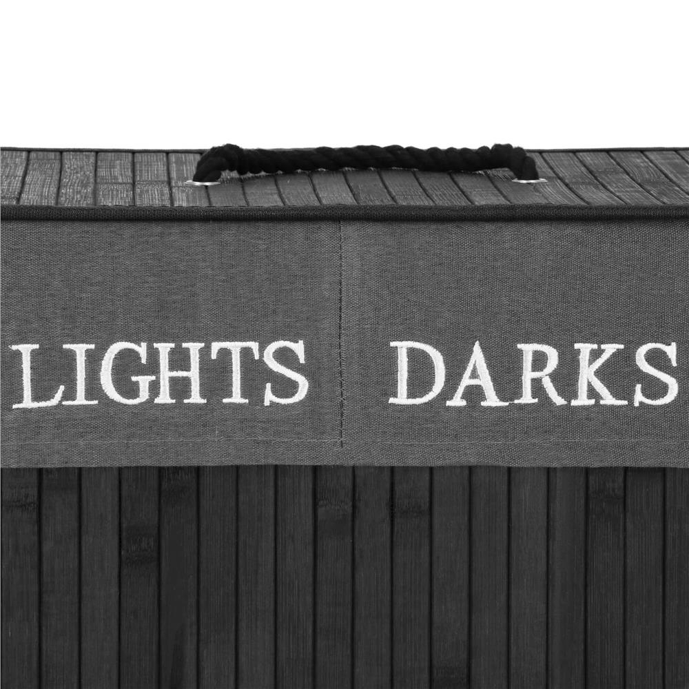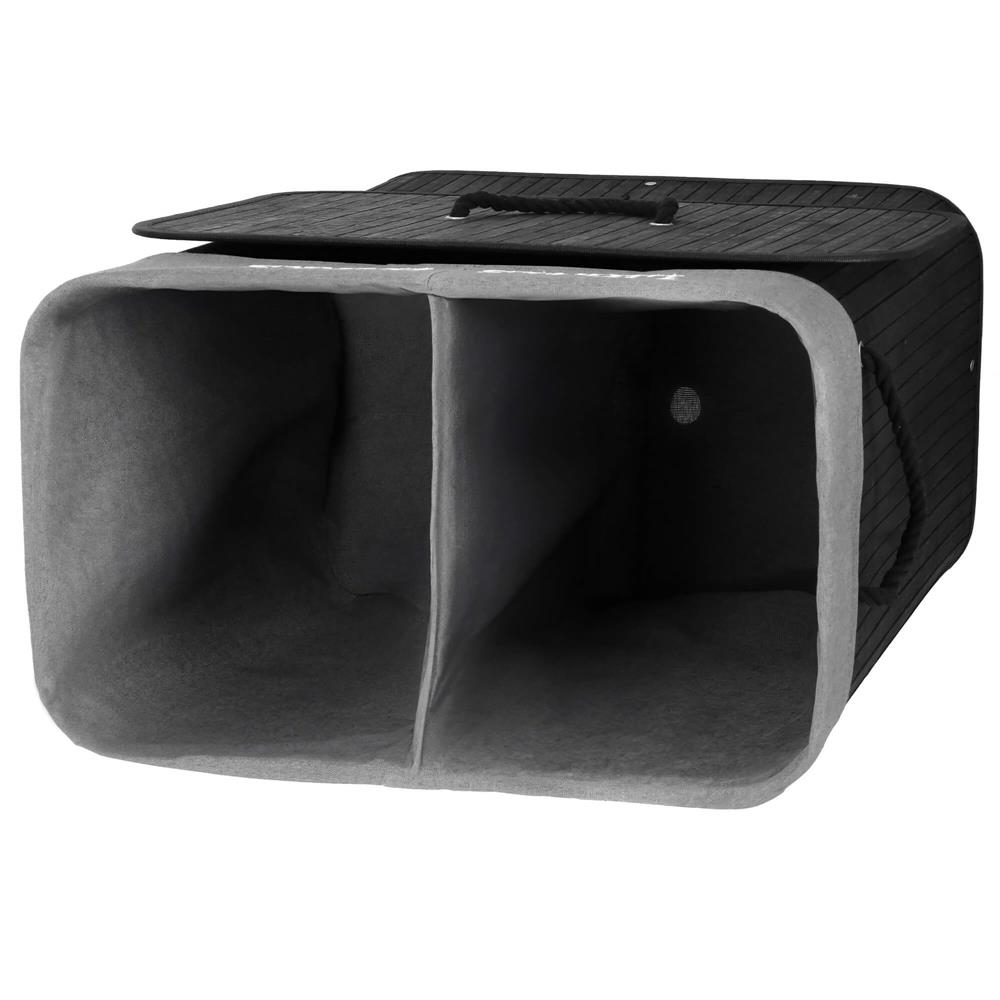Cos de rufe din bambus cu capac, 2 compartimente, sac detasabil, volum 100L, 54x34x60cm, negru