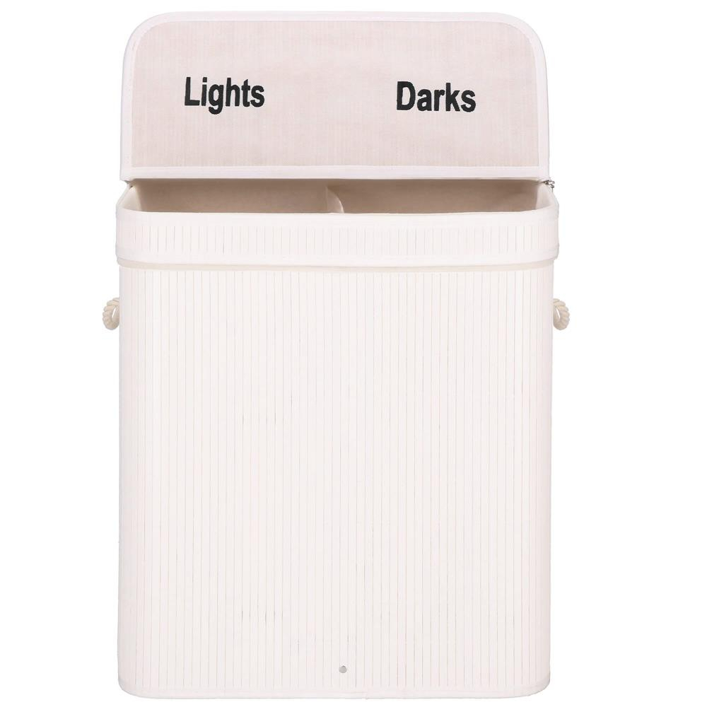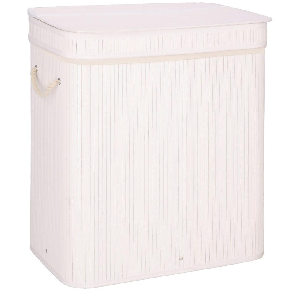 Cos de rufe din bambus cu capac, 2 compartimente, sac detasabil, volum 100L, 54x35x60cm, alb