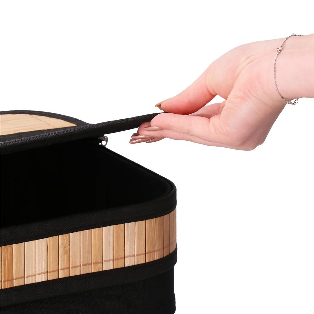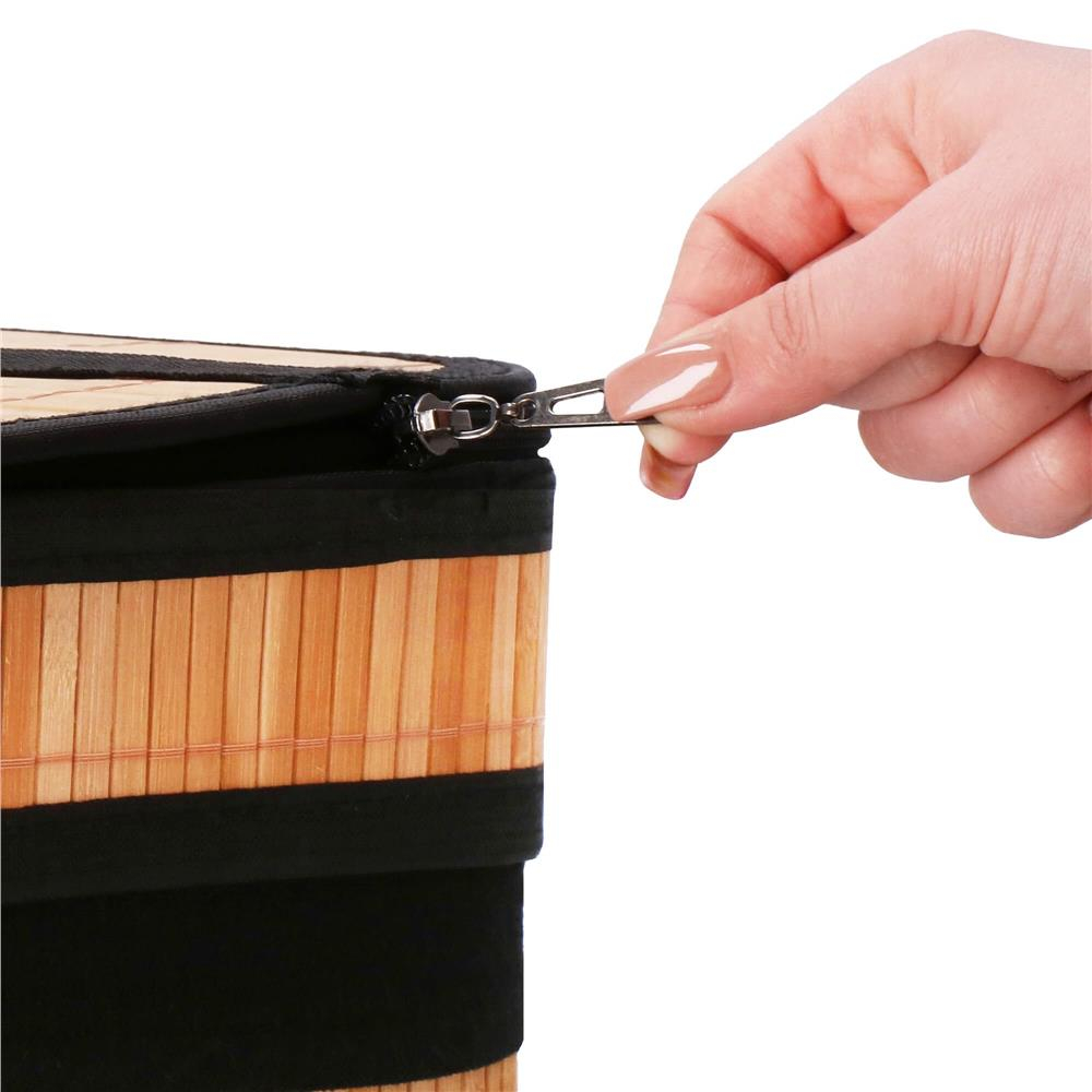 Culoare: maro/negru Material: bambus, MDF, material, metal Capacitate: 72 l Numar de camere: 1 Produs pentru auto-asamblare - instructiuni pe spatele etichetei DIMENSIUNI: Inaltime: 60...
