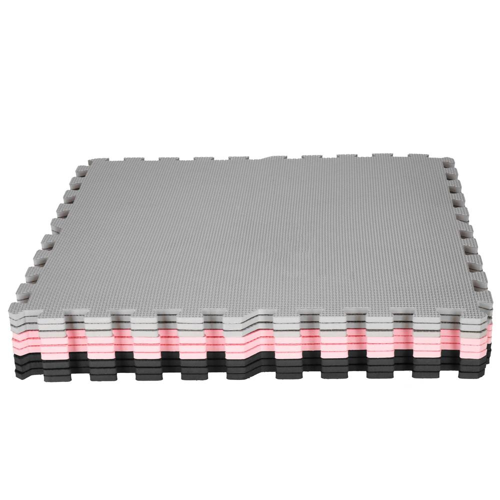 Covor din spuma pentru copii, tip puzzle forme, 27 piese, termoizolant, 179×179 cm, gri roz