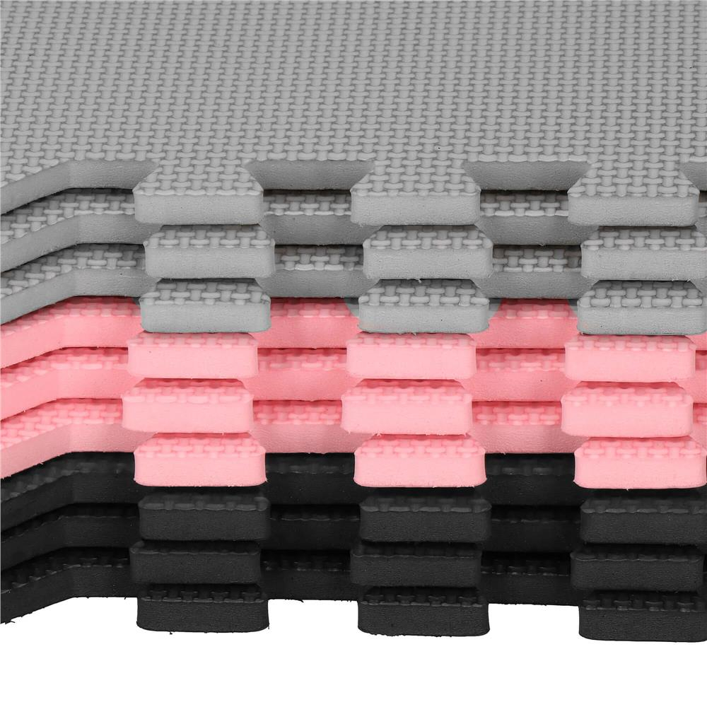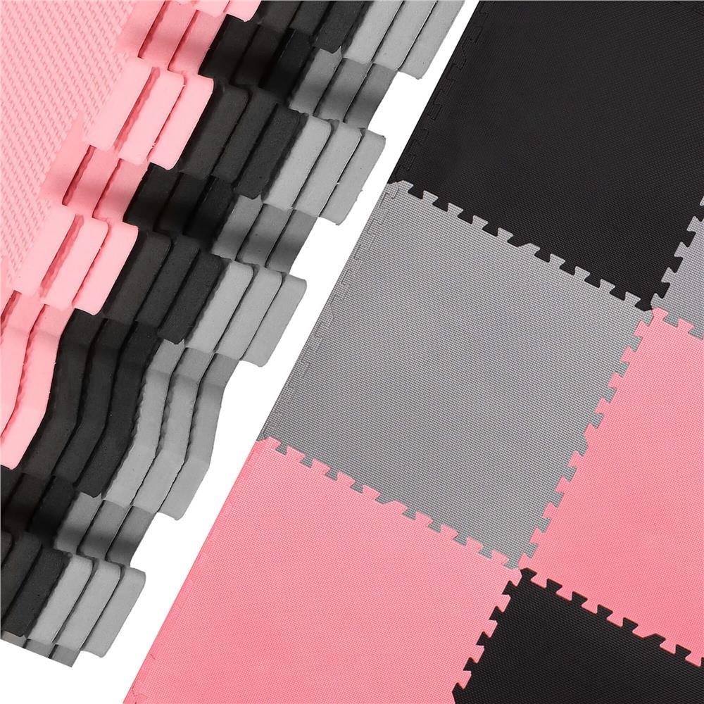Material: spuma EVA Design: Forme Culoare: roz, gri, negru Numar de puzzle-uri: 9 Numar de muchii: 18 Numarul total de piese: 27 (puzzle + marginile)...