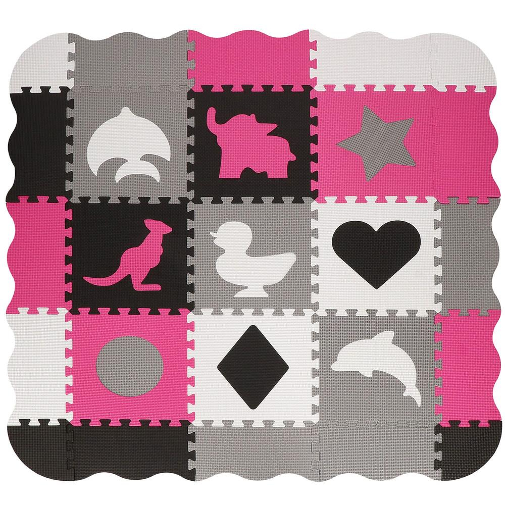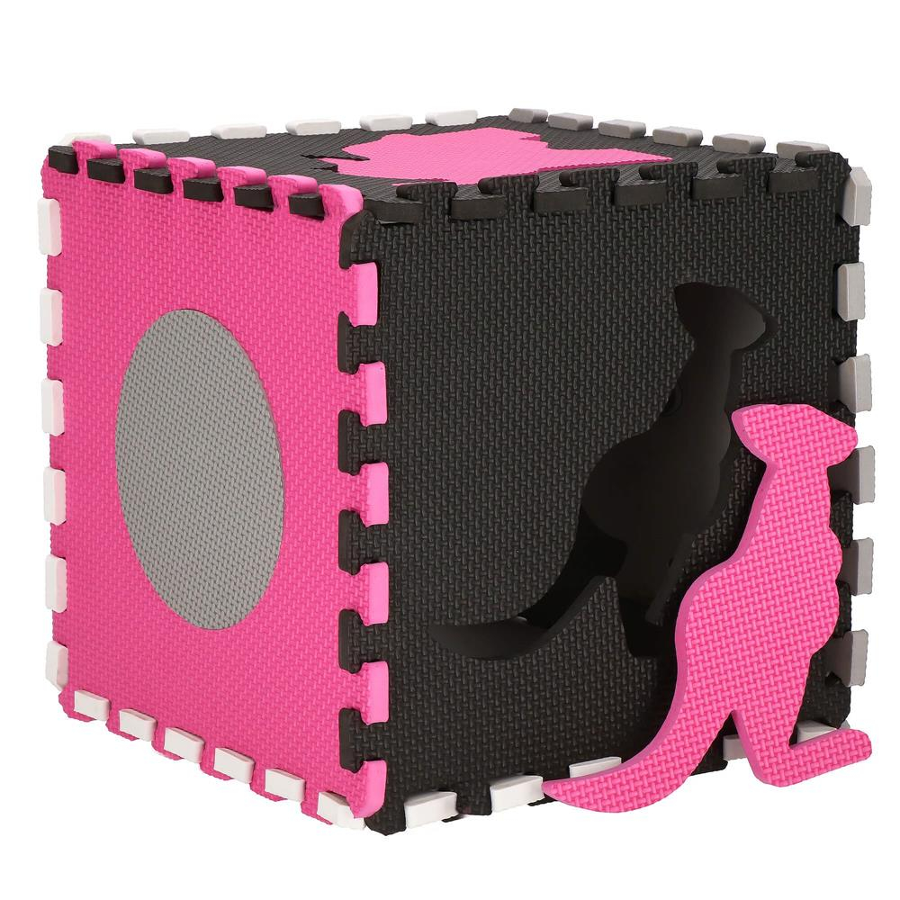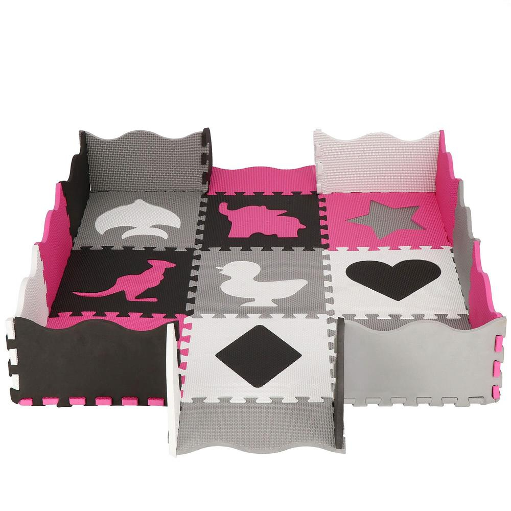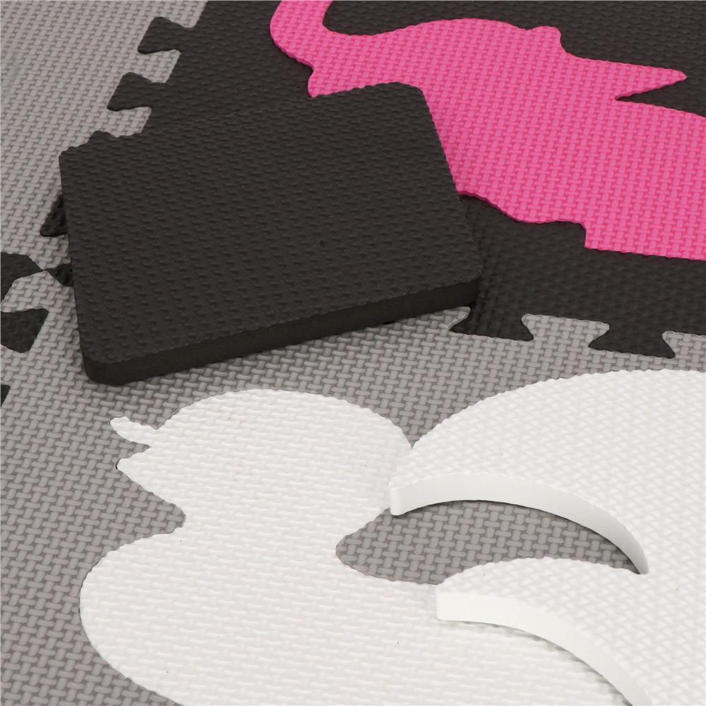 Material: spuma EVA Design: Forme Culoare: alb, gri, roz, negru Numar de puzzle-uri: 9 Numar de margini: 12+4 mai mici Numarul tuturor elementelor: 34 (puzzle,...