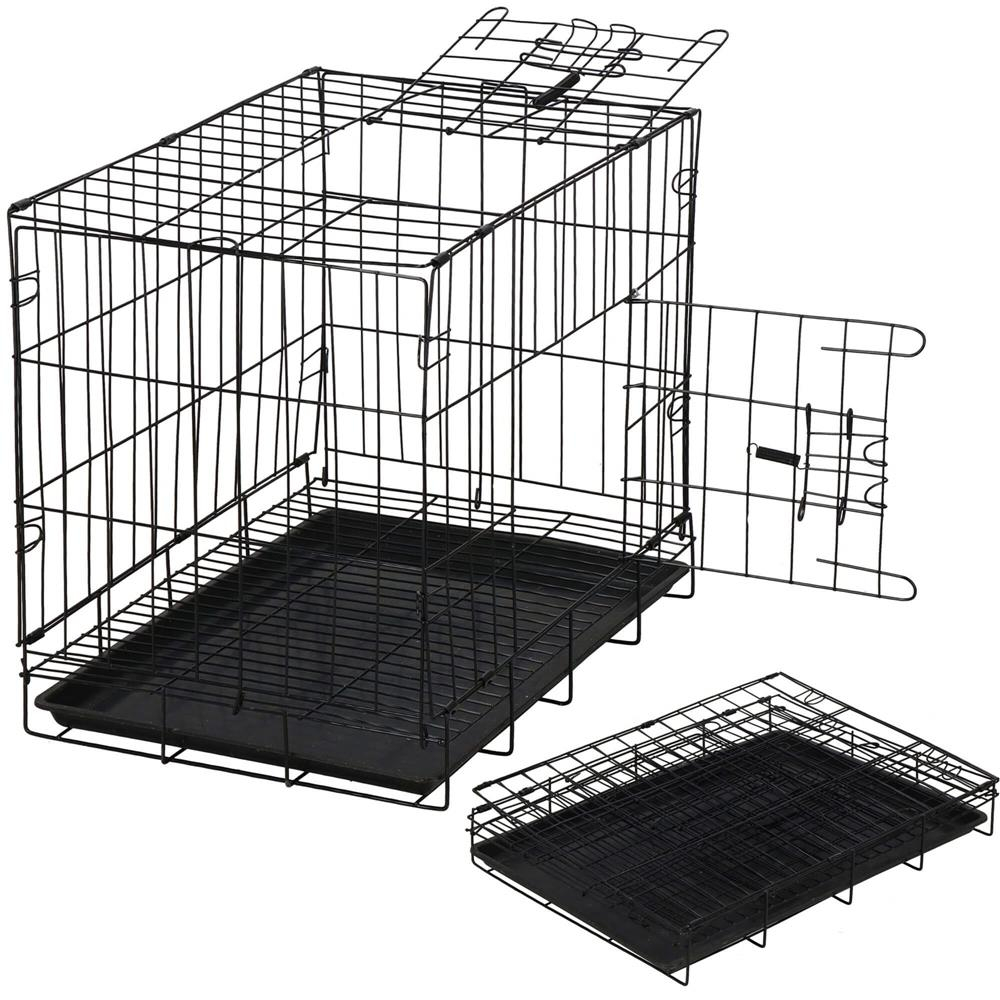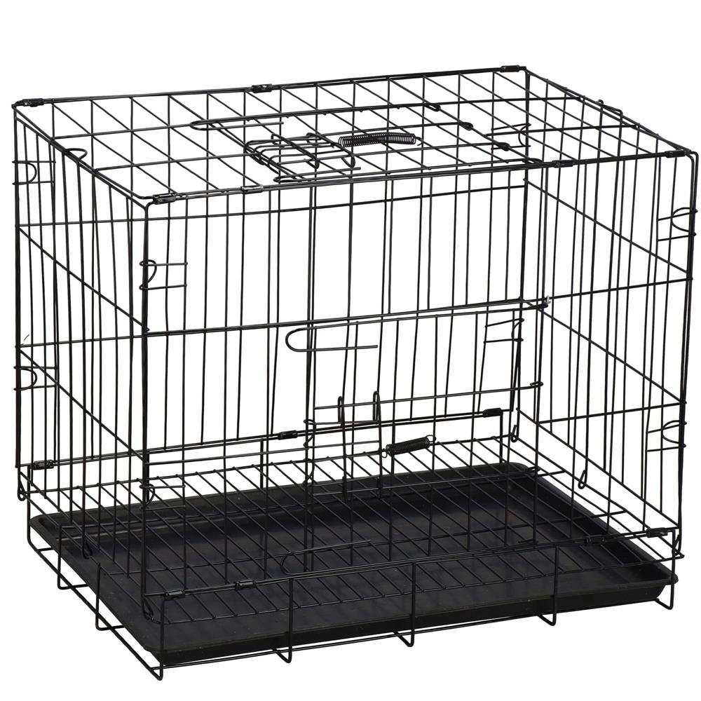 Cusca pentru animale, 2 usi, Pliabila din metal, M, Negru, 50x42x34 cm