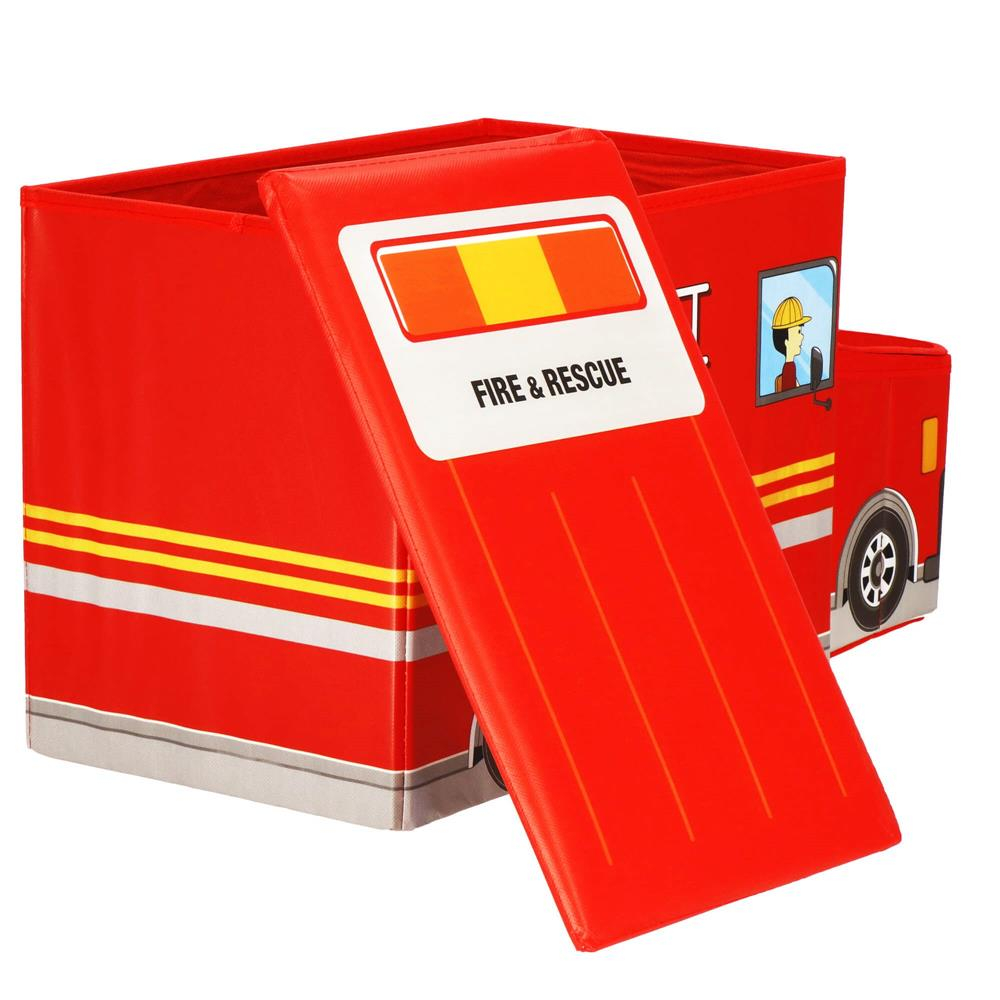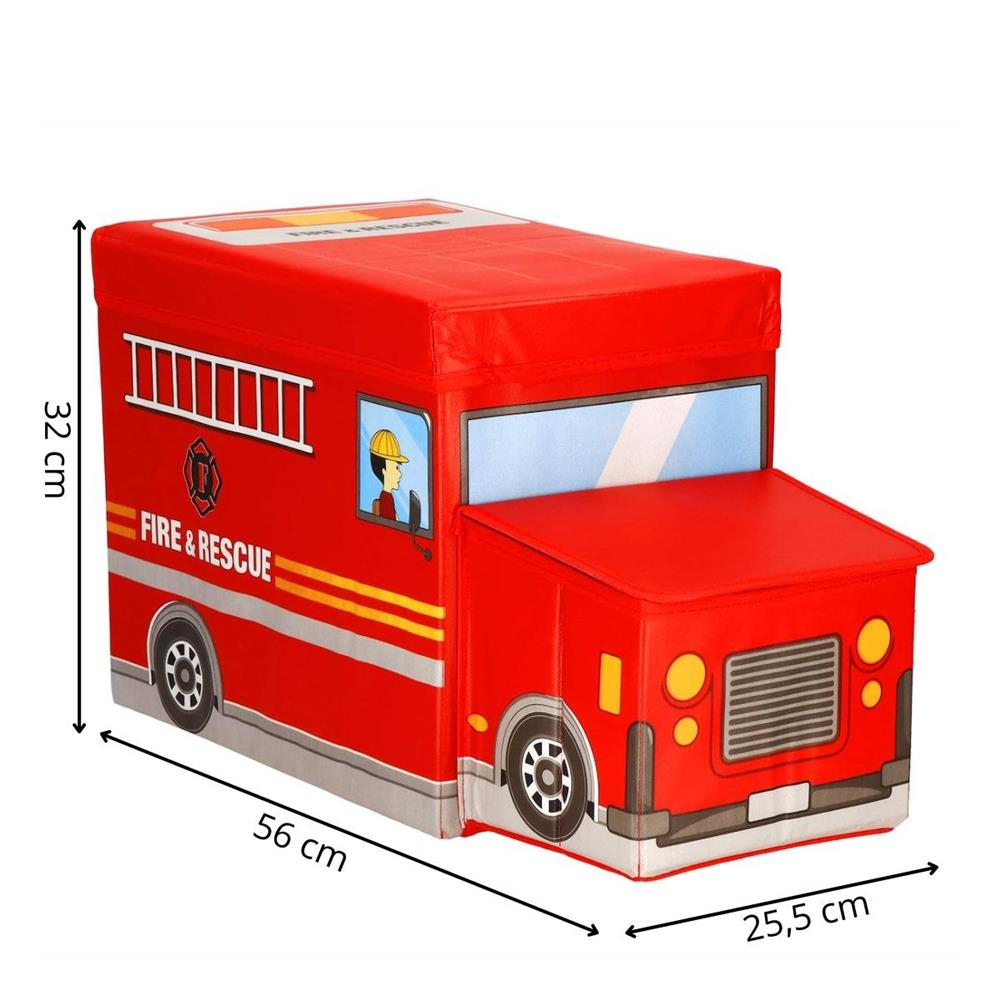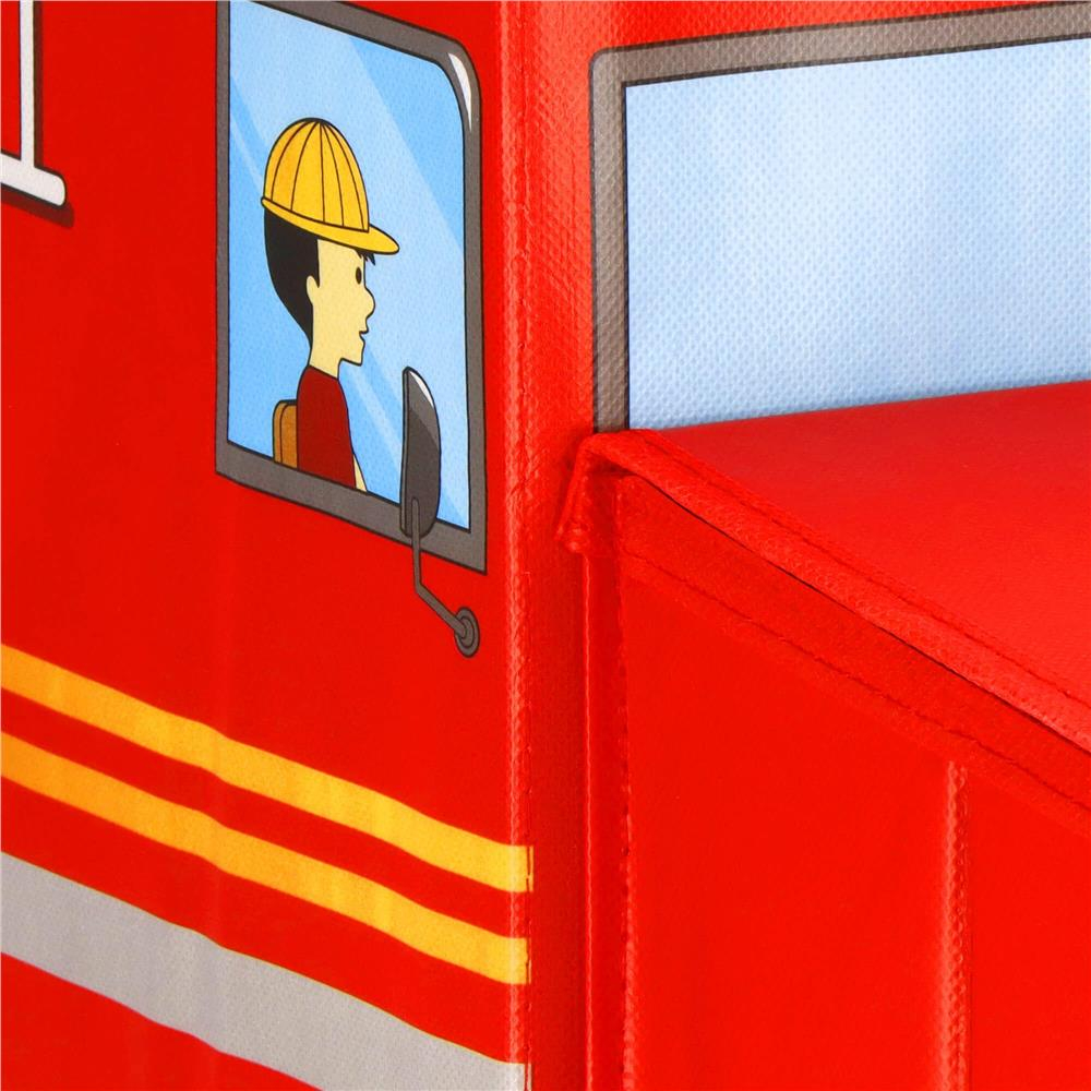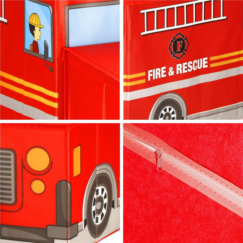 Cutie depozitare jucarii, pliabila cu capac, model masina pompieri, 32x26x56cm, alb