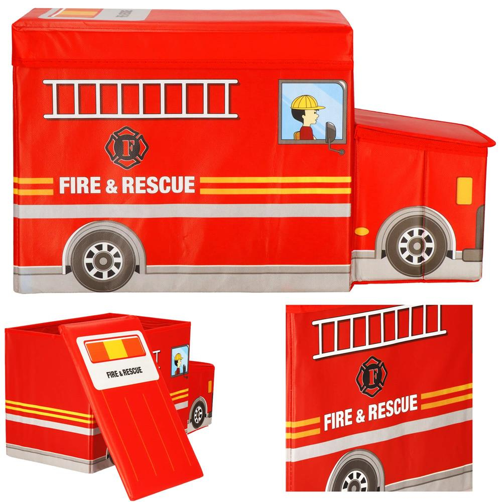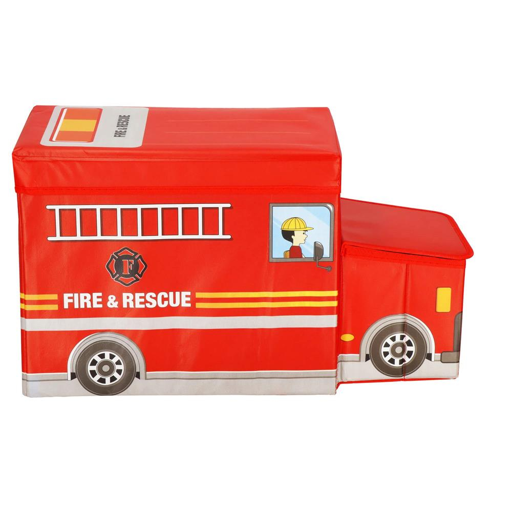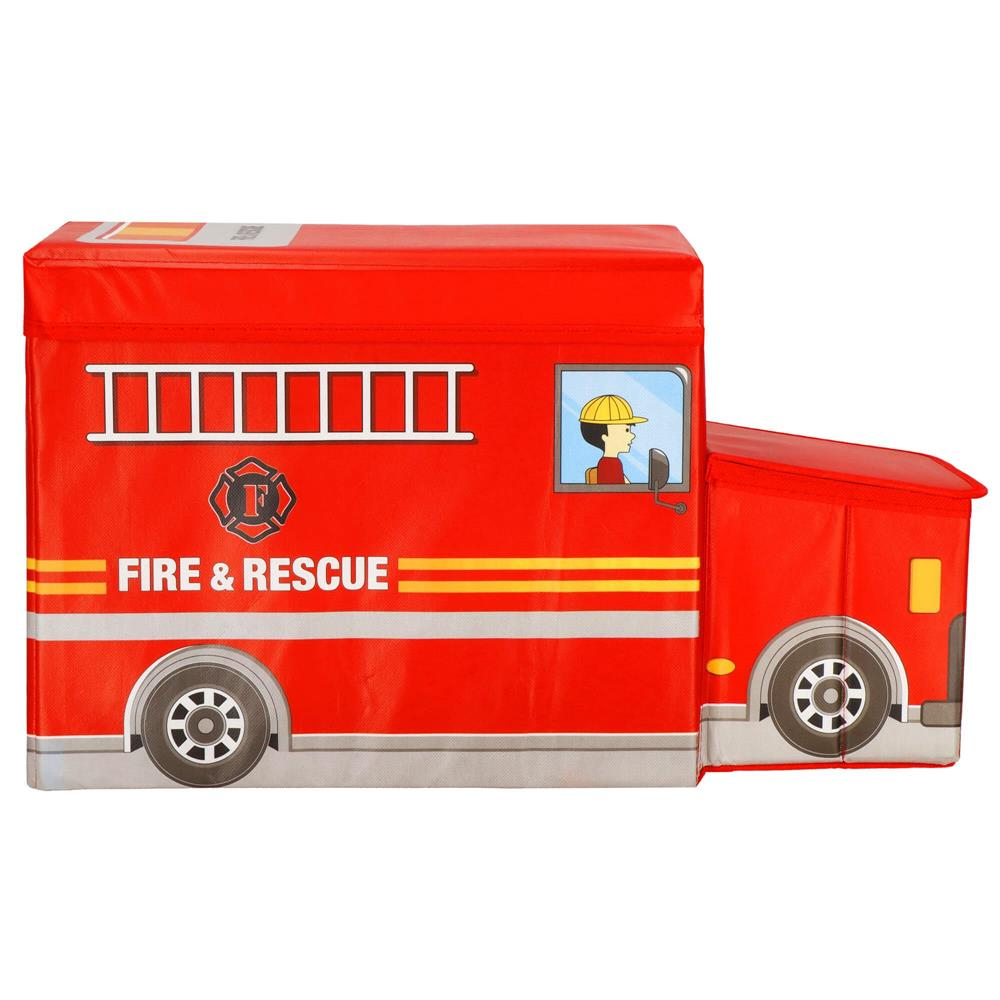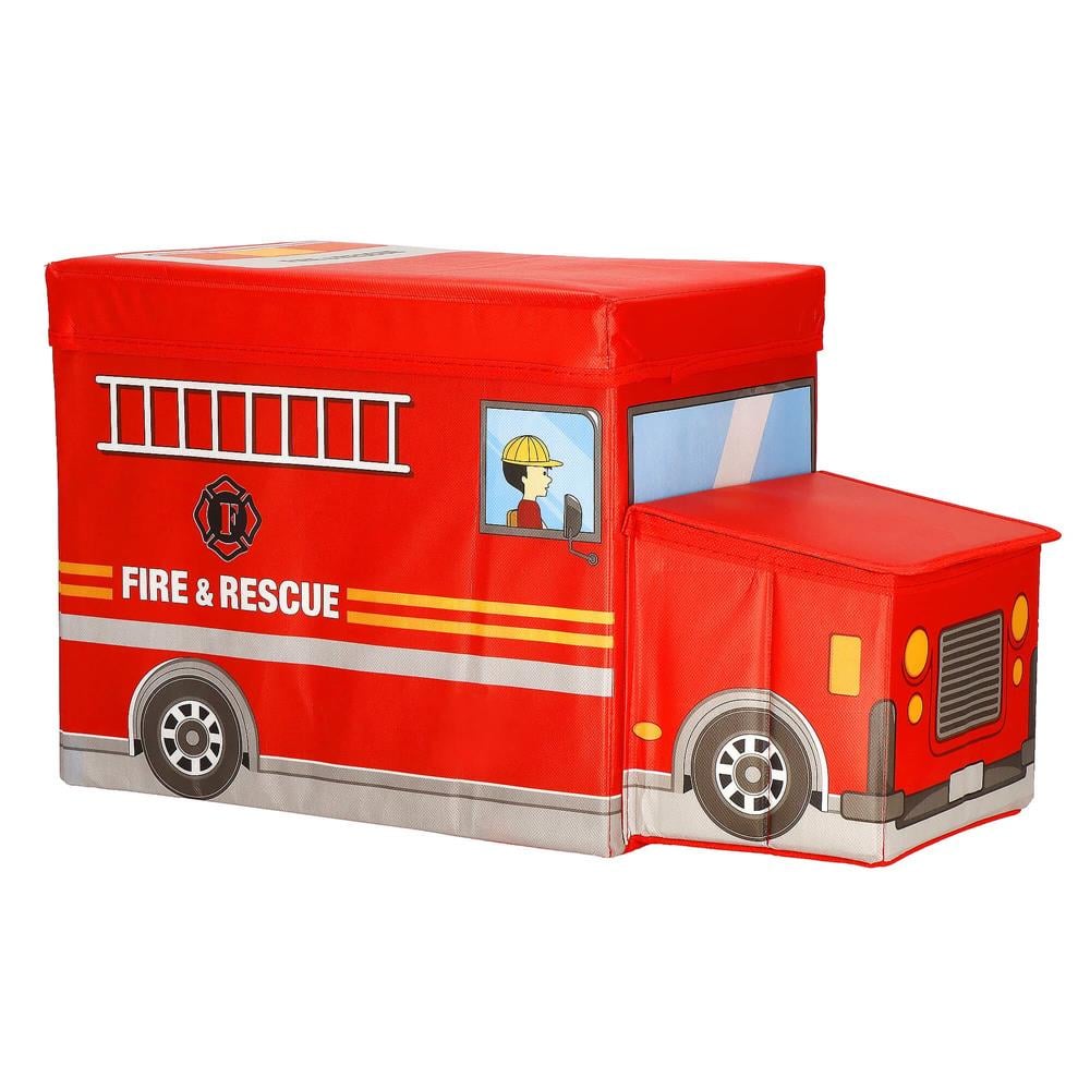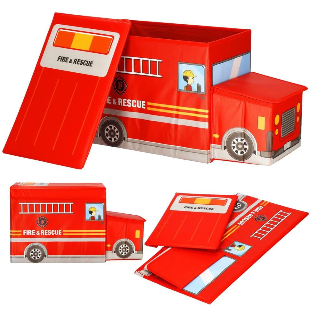 Cutie depozitare jucarii, pliabila cu capac, model masina pompieri, 32x26x56cm, alb