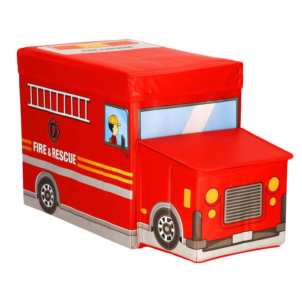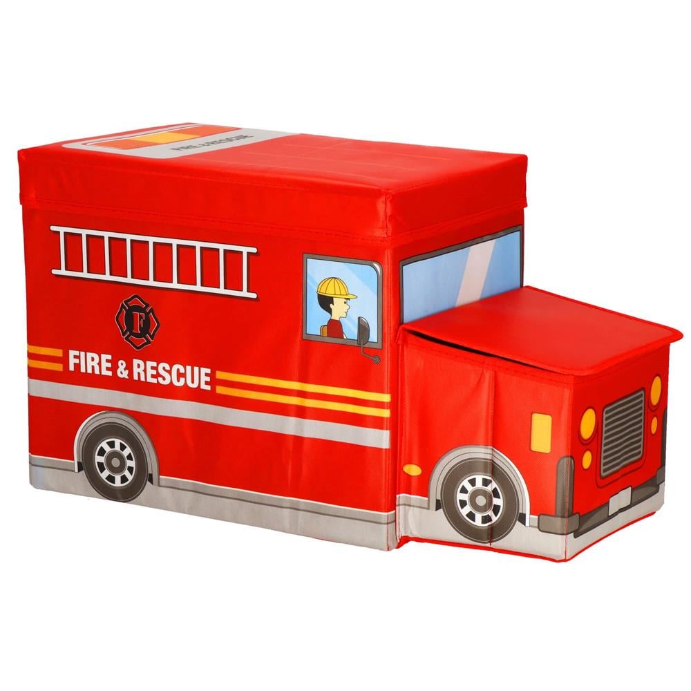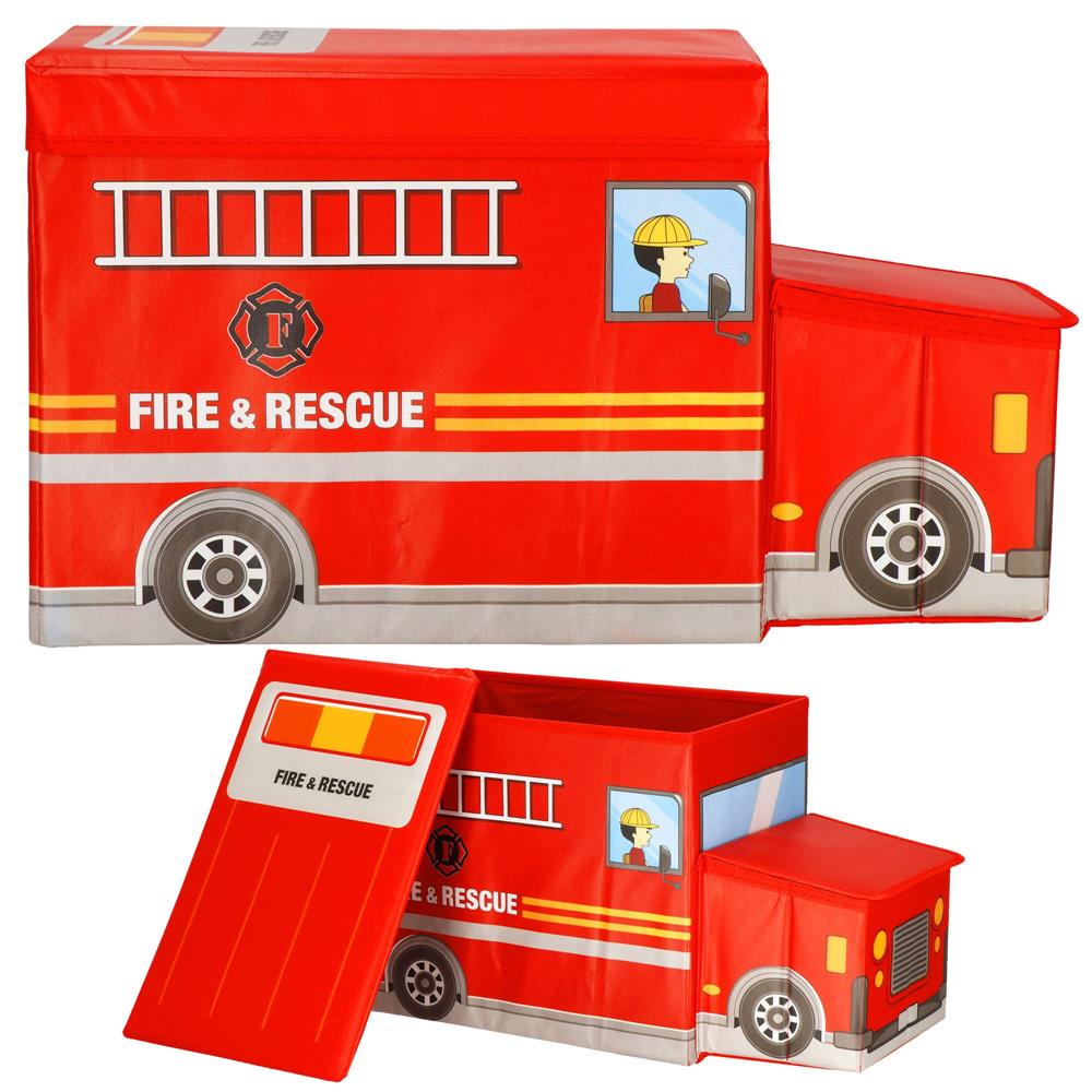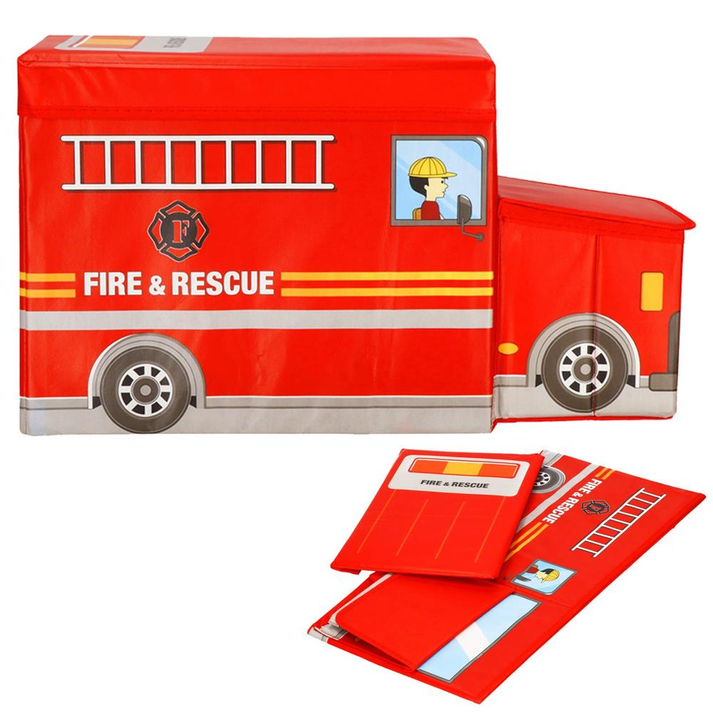 Cutie depozitare jucarii, pliabila cu capac, model masina pompieri, 32x26x56cm, alb