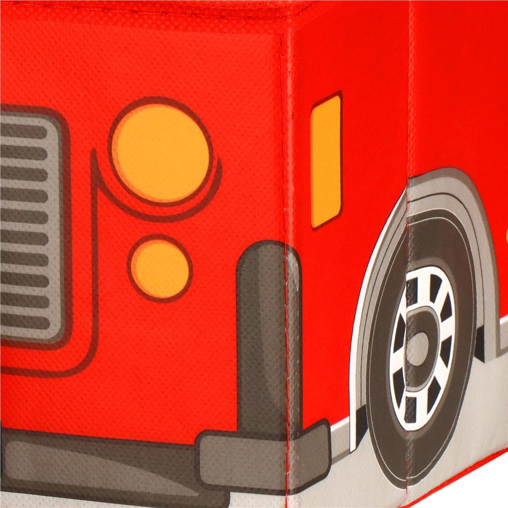 PARAMETRII: Culoare: rosu, multicolor Material: poliester, MDF Avantaje: containerul seamana cu o masina de pompieri, doua camere de depozitare Asamblare: produs de auto-asamblare in cel...