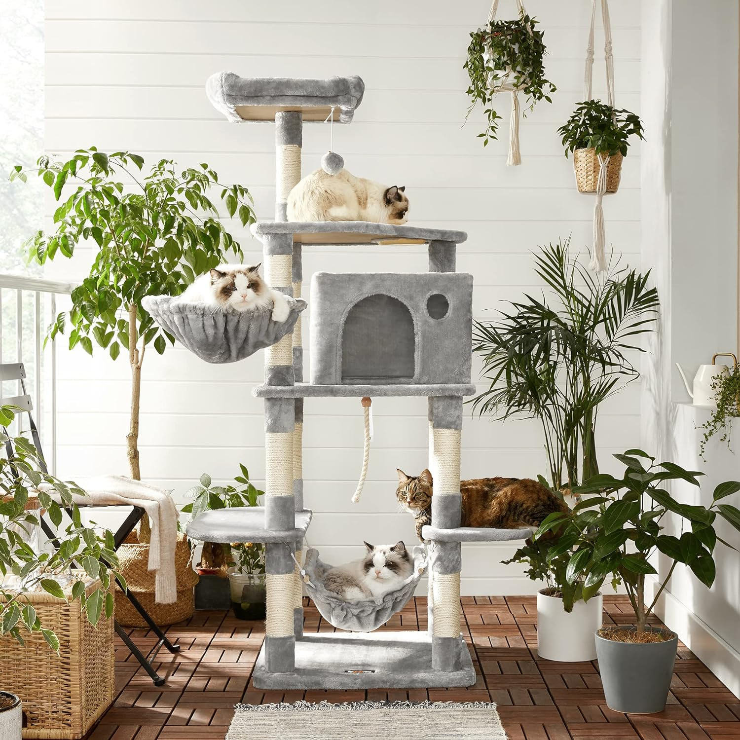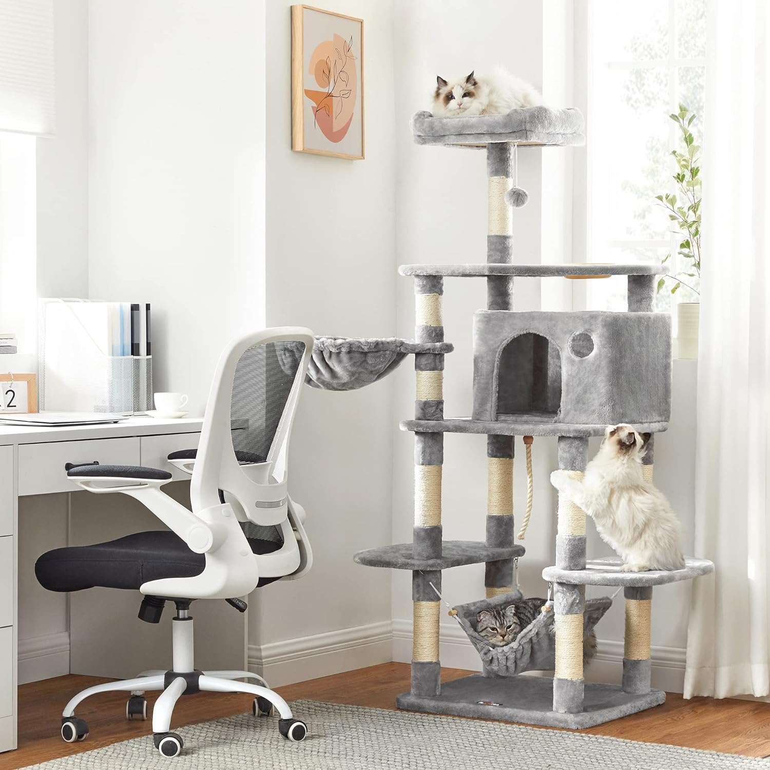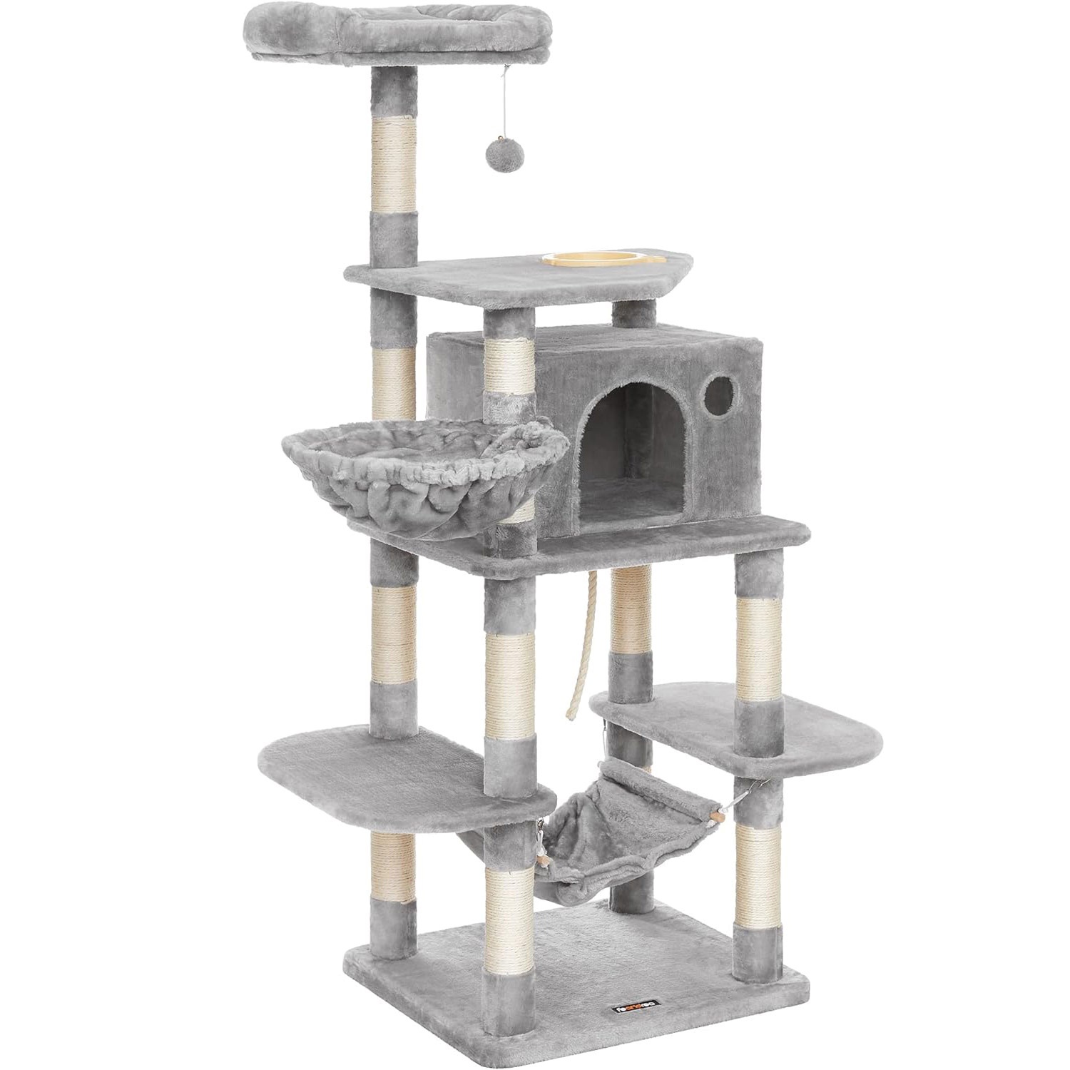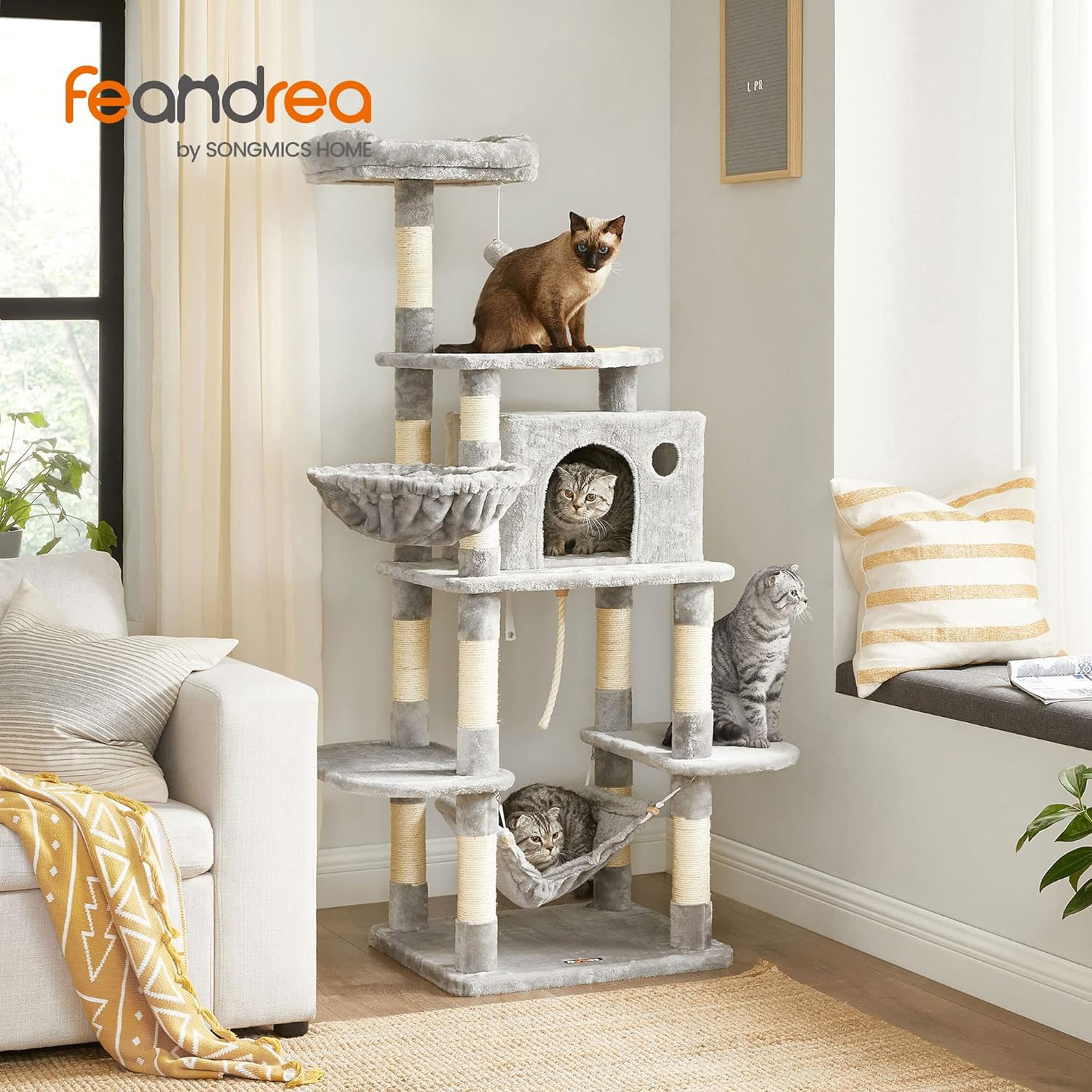 FEANDREA Ansamblu de joaca pentru pisici, tip copac, cu culcus si ascunzatoare, 55x50x164cm, gri deschis