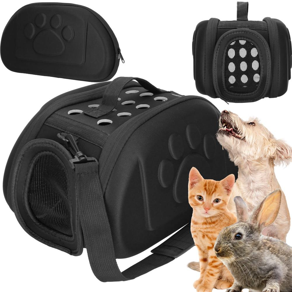 Geanta pentru transport animale mici, pentru caine si pisica, pliabila, curea de umar, 20x35x20 cm, negru
