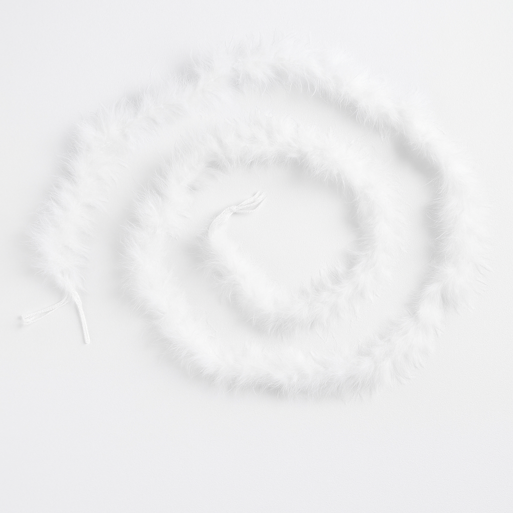 Ghirlanda pentru decor sau bradul de Craciun, model pene si bumbac, 200cm, alb