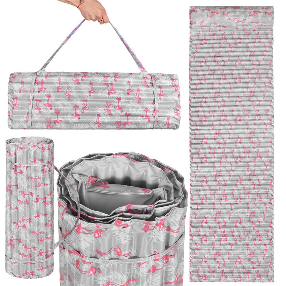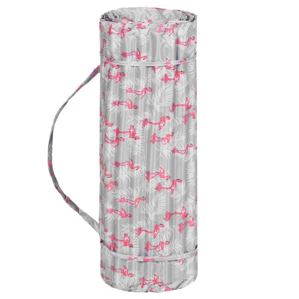 Saltea pentru plaja pliabila, din spuma, ultra-usoara, cu perna si maner de transport, 60x180cm, gri flamingo roz