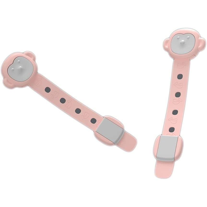 Siguranta pentru Usi Copii, , Sistem de Blocare Sertare, Dulap, Frigider, Adeziv, cu Sistem de Inchidere Dublu, Model Maimutica, Roz