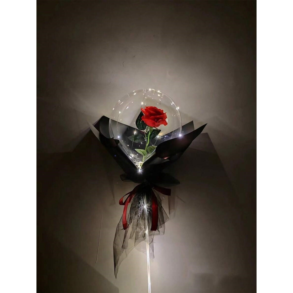 Material: latex, trandafir artificial, lumini LED