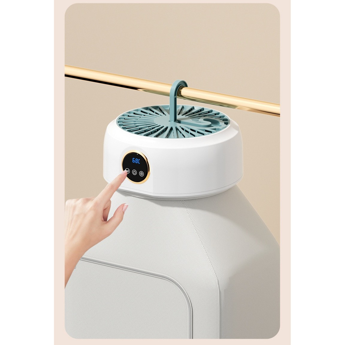 Uscătorul de rufe este un dispozitiv compact și eficient, ideal pentru uscarea rapidă și silențioasă a hainelor acasă sau în călătorii. Designul portabil și funcțiile inteligente îl fac potrivit pentru orice spațiu.