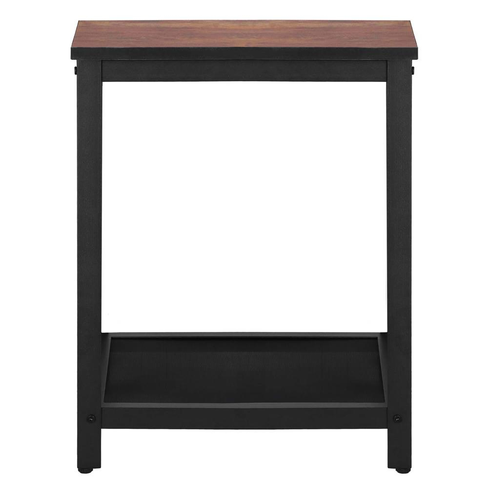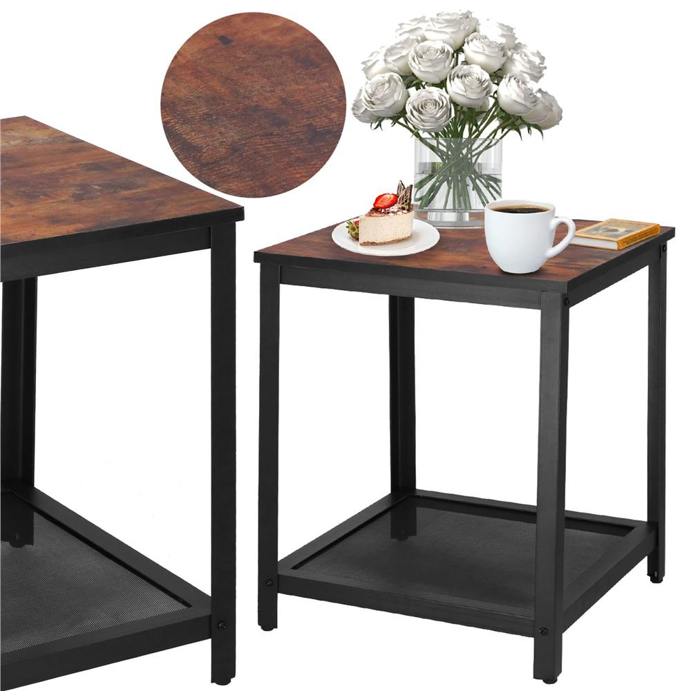 Masa de cafea patrata, noptiera cu cadru otel si polita de depozitare, 45x45x55 cm, maro rustic