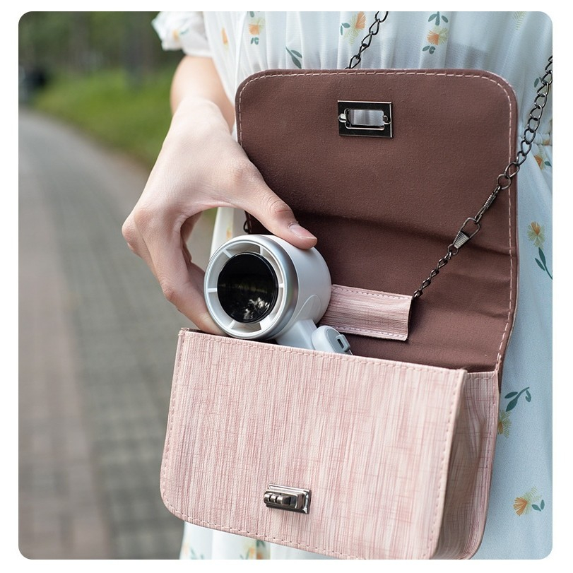 Răcorește-te oriunde și oricând cu mini ventilatorul portabil , un dispozitiv compact și puternic, perfect pentru zilele toride sau spațiile aglomerate. Echipat cu afișaj digital HD, 5 trepte de viteză și încărcare USB-C, acest ventilator este companionul ideal pentru acasă, birou, călătorii sau drumeții.