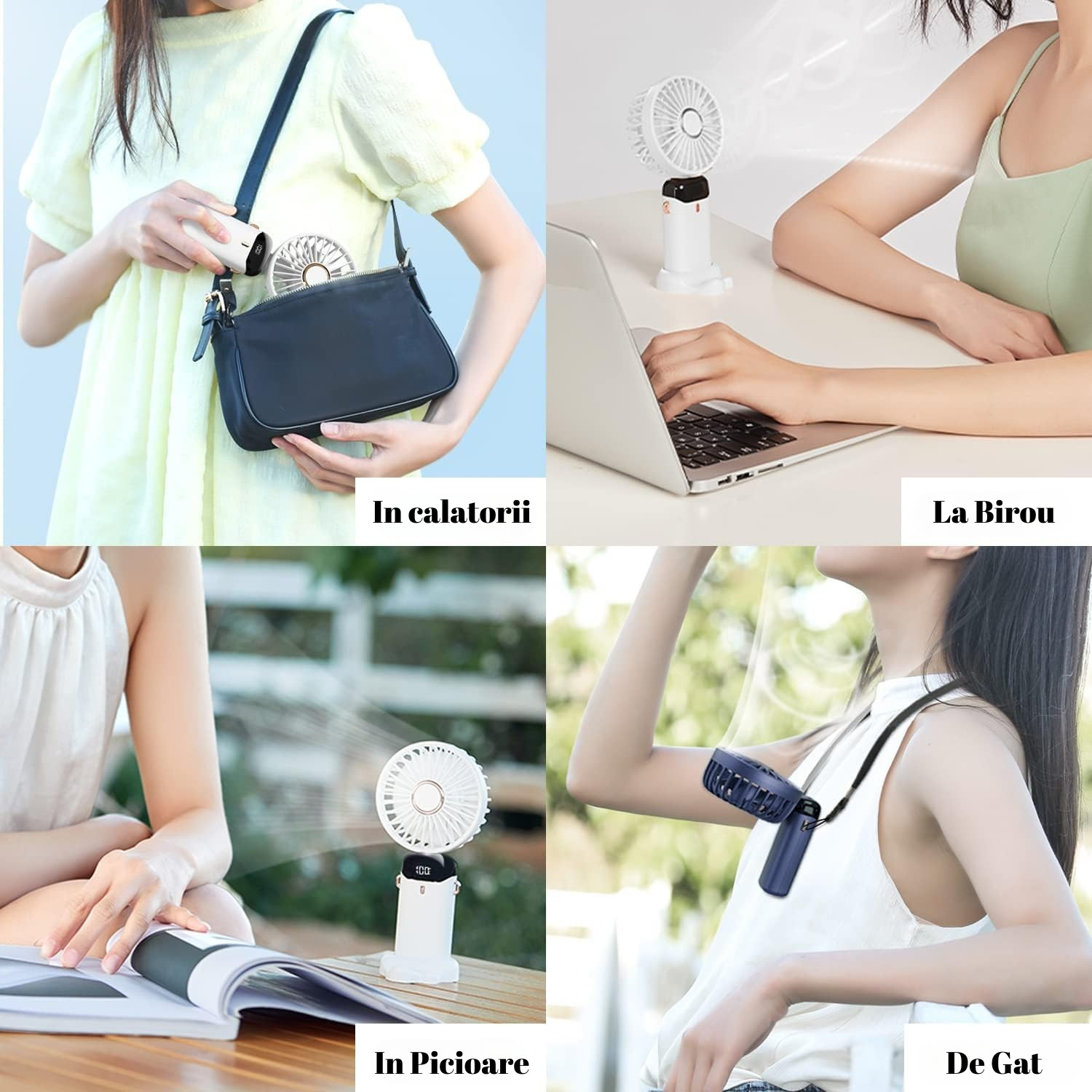 | Cu posibilitatea de a-l plia și transporta ușor în geantă, acest mini-ventilator devine partenerul tău de încredere în fiecare călătorie și aventură. | Poti utiliza uleiuri esentiale. Această caracteristică ingenioasă îți oferă posibilitatea de a personaliza mediul înconjurător atât cu o briză răcoritoare, cât și cu aroma preferat. | Se curata usor, deschizand capacul ventilatorului rotind în sens invers acelor de ceasornic. Scoateți lama ventilatorului. Spălați cu apă. |