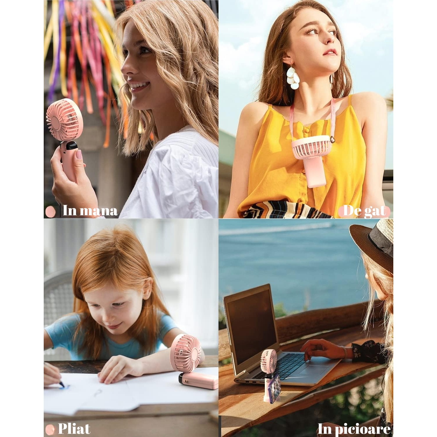 | Cu posibilitatea de a-l plia și transporta ușor în geantă, acest mini-ventilator devine partenerul tău de încredere în fiecare călătorie și aventură. | Poti utiliza uleiuri esentiale. Această caracteristică ingenioasă îți oferă posibilitatea de a personaliza mediul înconjurător atât cu o briză răcoritoare, cât și cu aroma preferat. | Se curata usor, deschizand capacul ventilatorului rotind în sens invers acelor de ceasornic. Scoateți lama ventilatorului. Spălați cu apă. |