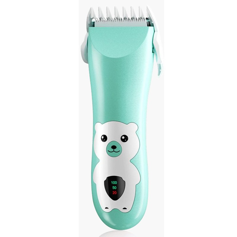 Masina De Tuns Bebelusi si Copii, , Display Digital, Lame Cermice si Inox, Fara Fir, Functie Anti Taiere, Silentios, 50 W, Rezistent la Apa, 2 Accesorii, Incarcator USB, Model Ursulet, Verde
