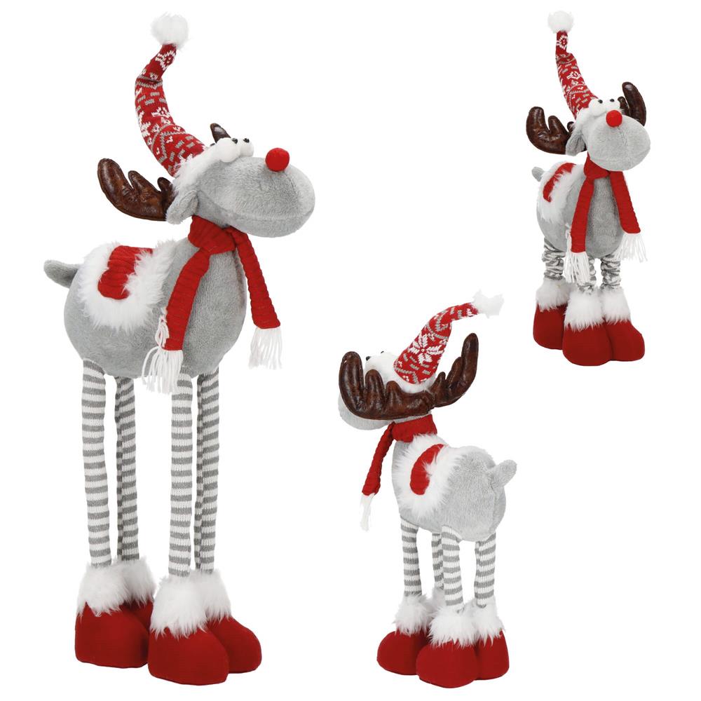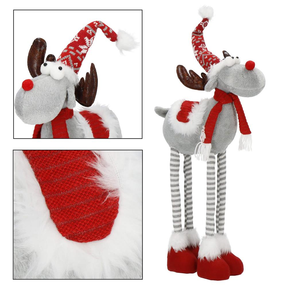 Figurina Craciun, Ren, picioare telescopice, iluminare LED, inaltime reglabila 64-85cm