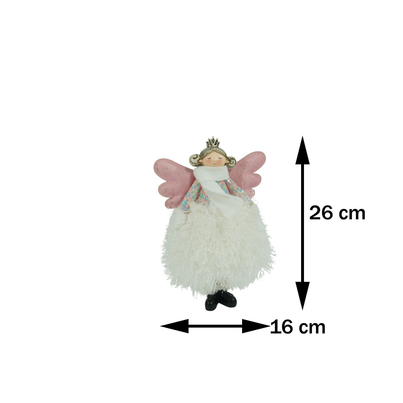 Decoratiune ingeras Ingeras adorabil cu aripi roz, fusta alba si coronita aurie, este un plus pentru bradul de craciun, in fereastra sau orice loc din casa ce are nevoie de spirit festiv. |