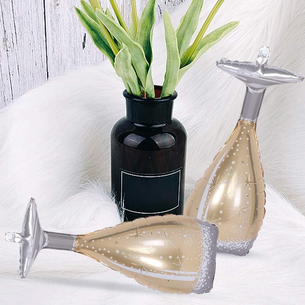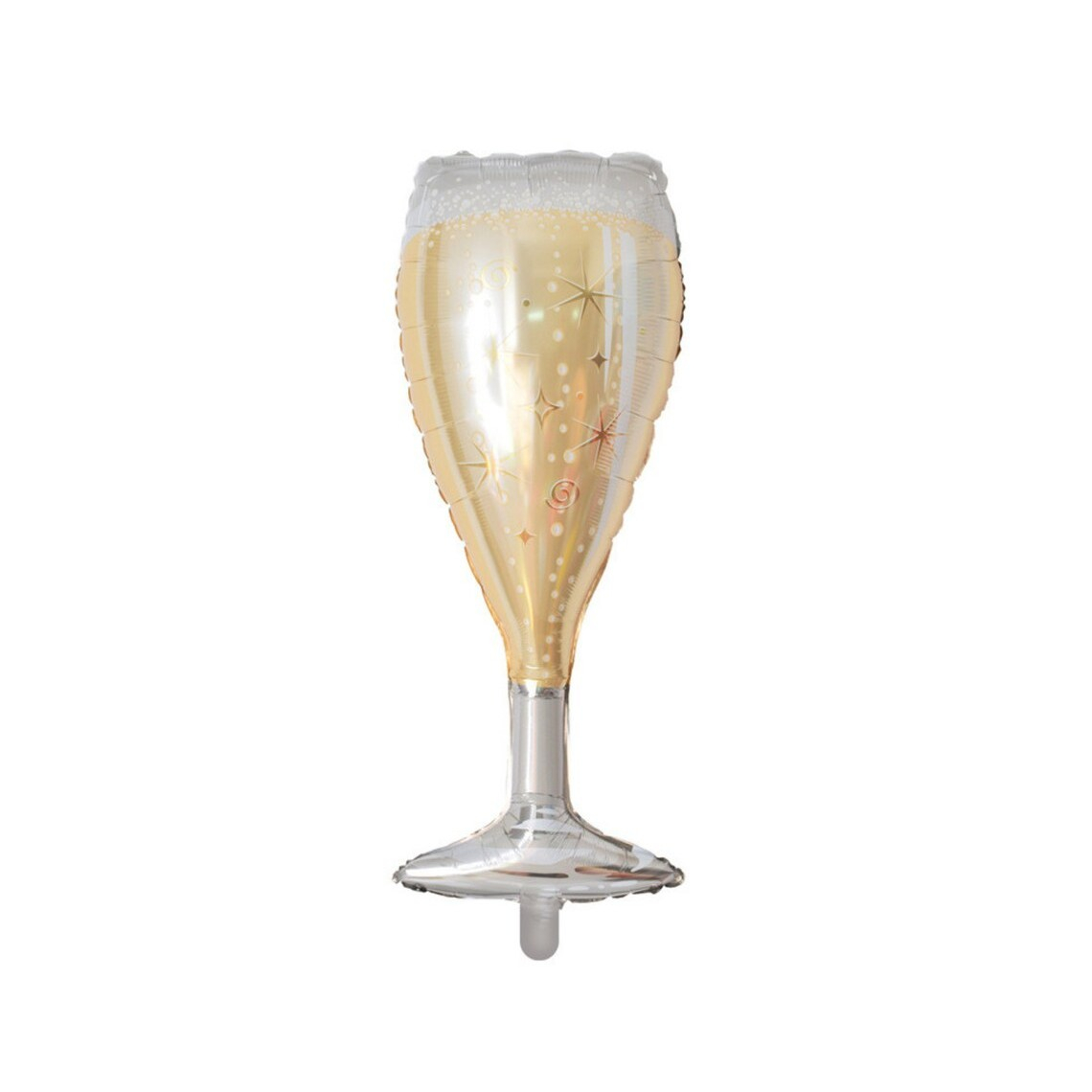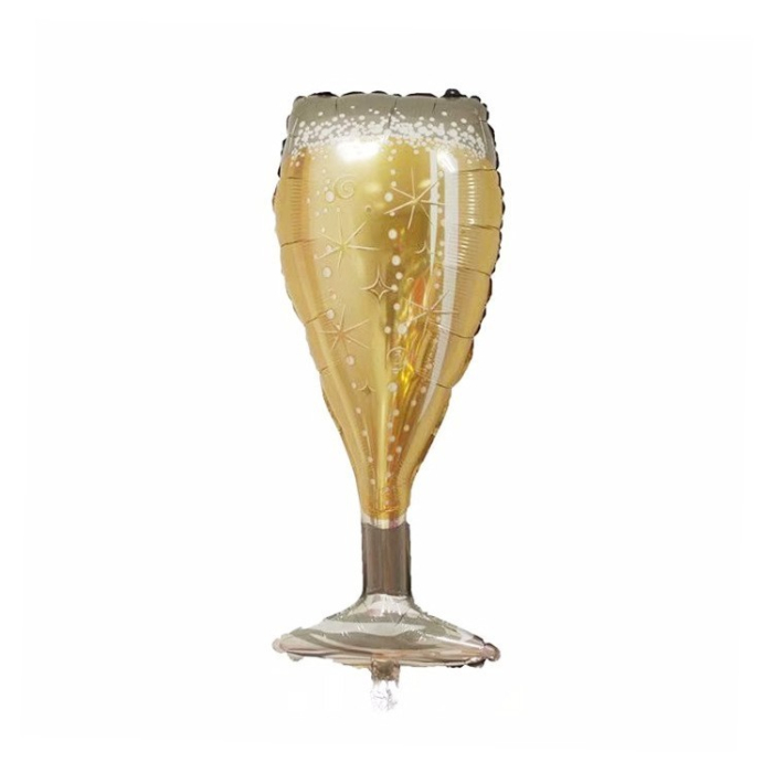 Balon din Folie Metalizata, , Figurina Pahar de Sampanie, Tema Aniversare, 100x40 cm, Ambalaj Individual, Pai Inclus, Umflare cu Aer sau Heliu, Auriu