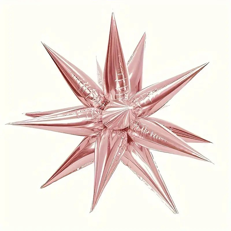 Balon din Folie Metalizata, , Figurina Stea 3D, 66 cm, Ambalaj Individual, Pai inclus, Umflare cu Aer sau Heliu, Roz