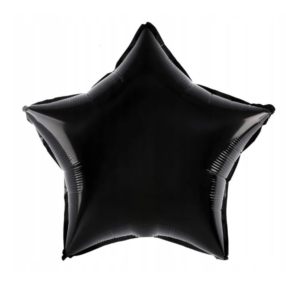 Balon din Folie Metalizata, , Figurina Stea, Model Simplu, Tematica Aniversare, 40 cm, Ambalaj Individual, Pai Inclus, Umflare cu Aer sau Heliu, Negru