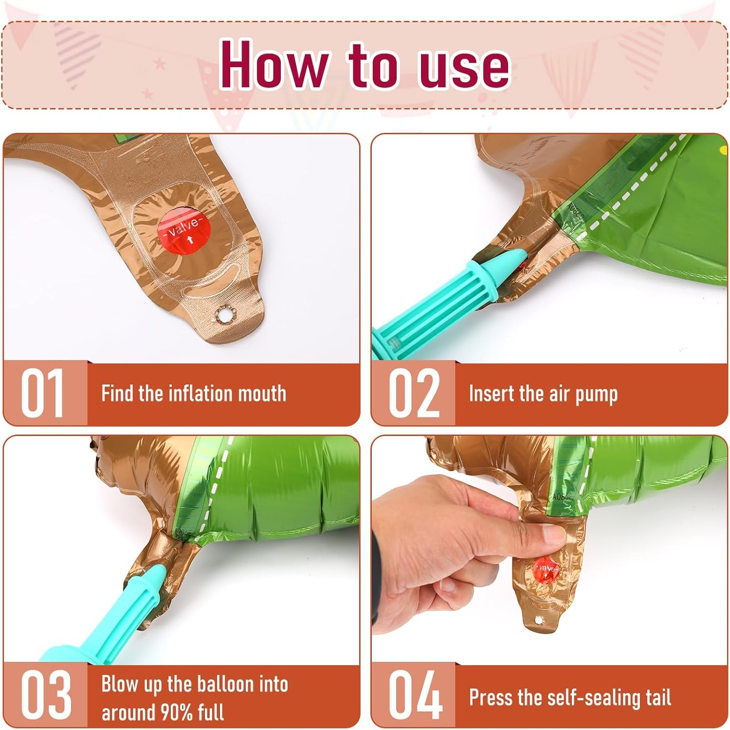 - Intindeti balonul si introduceti betisorul din pachet in supapa din partea de jos a balonului;