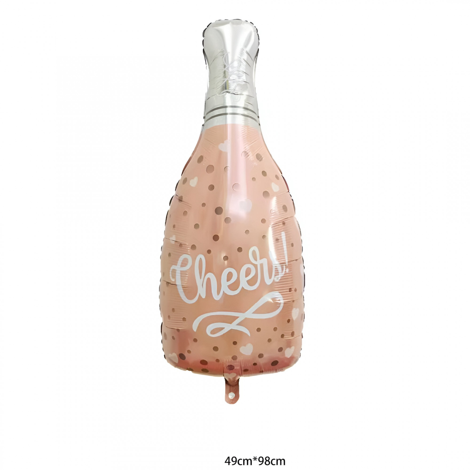 Balon din Folie Metalizata, , Figurine, Model Sticla de Sampanie, 49x98 cm, Ambalaj Individual, Pai Inclus, Umflare cu Aer sau Heliu, Roz