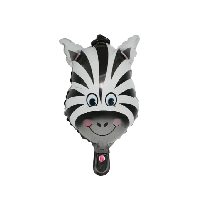 Balon din Folie Metalizata, , Mini Figurine Animalute, Model Zebra, Tematica Aniversare,25x45 cm, Ambalaj Individual, Pai Inclus, Umflare cu Aer sau Heliu, Multicolor