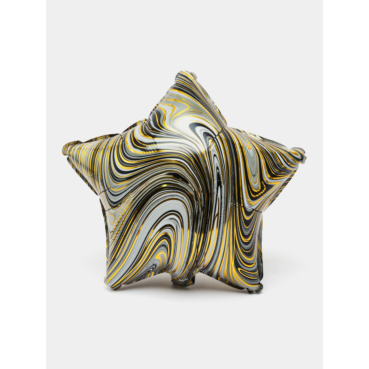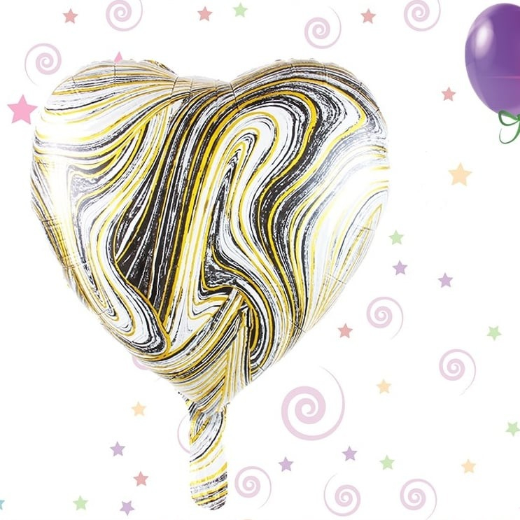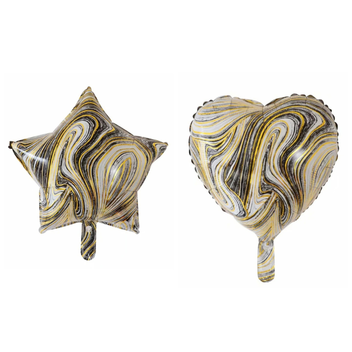 Set 2 Baloane din Folie Metalizata, , Figurine Inima si Stea, Model Marmura, 45 cm, Ambalaj Individual, Pai Inclus, Umflare cu Aer sau Heliu, Bej