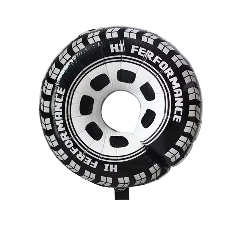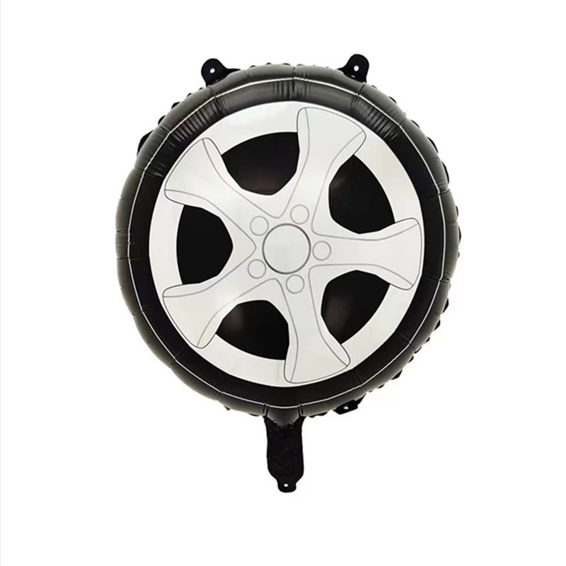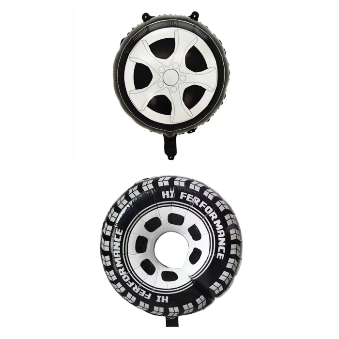 Set 2 Baloane din Folie Metalizata, , Figurine Roti, Model Masini, 75-80 cm cm, Ambalaj Individual, Pai Inclus, Umflare cu Aer sau Heliu, Negru