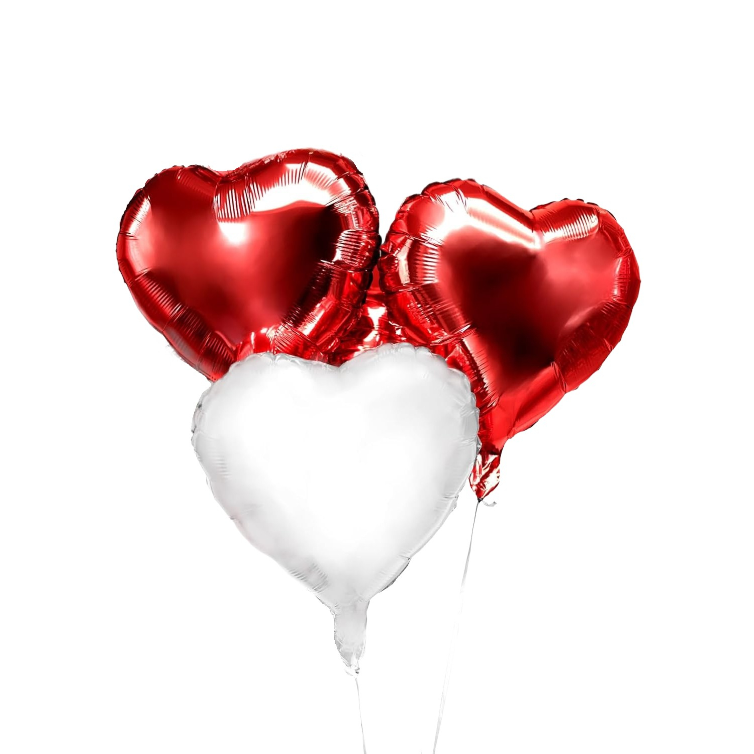Set 3 Baloane din Folie Metalizata, , Model Inimi, Tema Ziua Indragostitilor, 45 cm, 2 Rosii, 1 Alb, Ambalaj Individual, Pai Inclus, Umflare cu Aer sau Heliu, Alb/Rosu