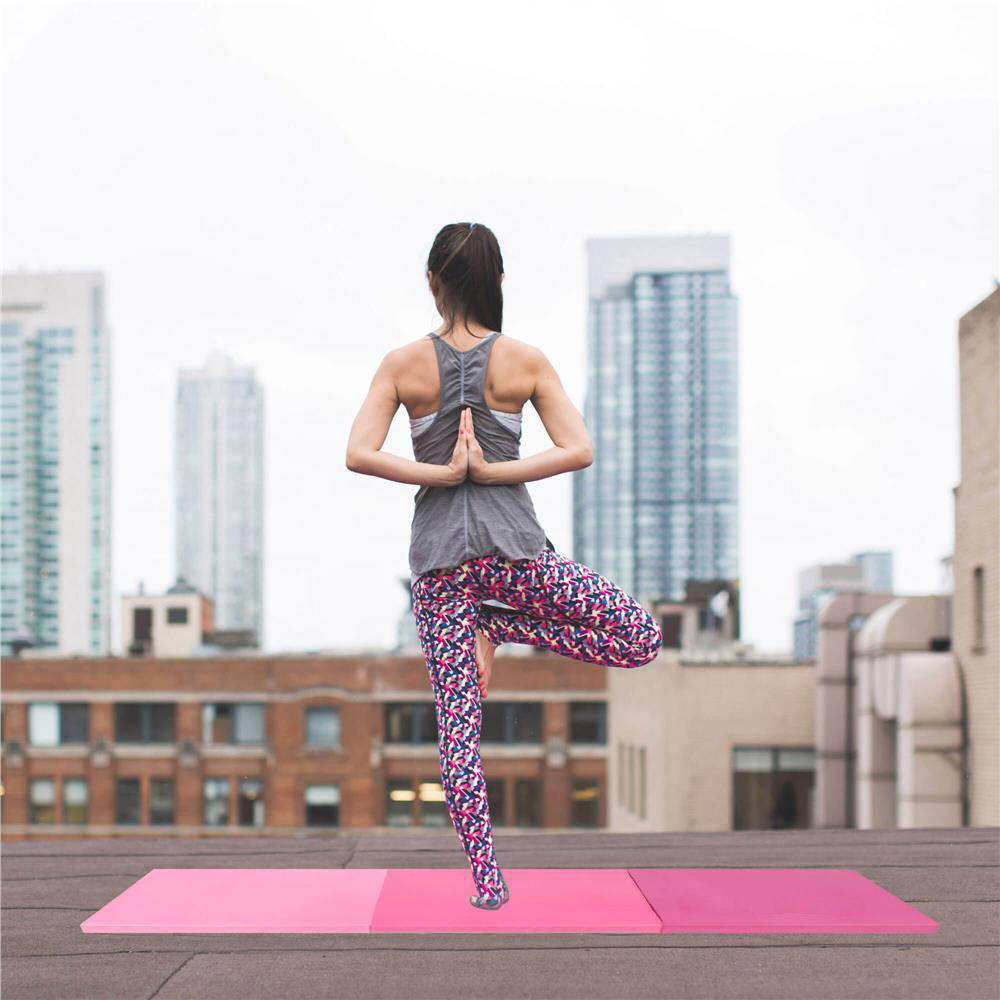 Saltea fitness groasa pentru antrenamente gimnastica, pliabila, 180x60x5,5cm, roz