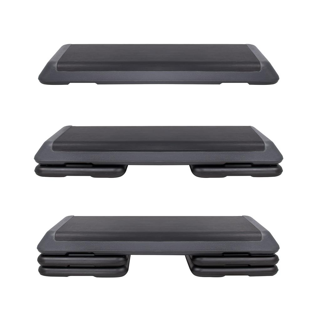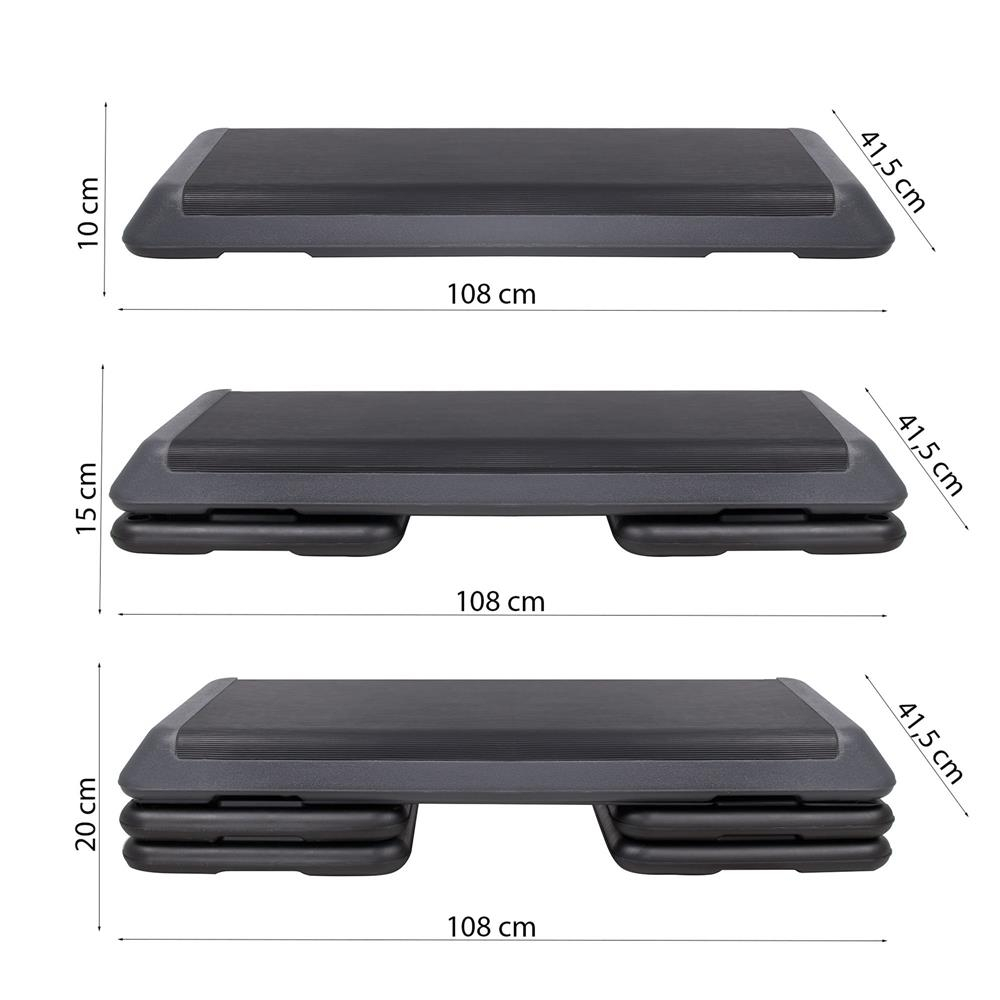 Stepperul il puteti folosi atat la domiciliu cat si la sala de antrenament.  Suprafata moale dar stabila  precum si faptul ca datorita picioarelor  inaltimea este reglabila la 3 nivele il face  ideal pentru exercitii de tip coregrafic  pe ritmul muzicii cum sunt cele aerobice sau fitness, precum si cele de formare si tonifiere musculara cum sunt cele de bodybuilding. Utilizand produsul  puteti mari intensitatea si eficacitatea exercitiilor de concentrare si coordonare  a intregului corp intarind muschii coapselor si gambelor dar tot atat de bine si cei ai bratelor, pieptului si spatelui daca executati de ex. flotari. Caracteristici: Trei niveluri de inaltime: 10cm / 15cm / 20cm Latime: 108 cm Adancime: 41,5 cm Sarcina: 350 kg Material: PP In plus: suprafata anti-alunecare, tampoane de cauciuc sigure pe partea inferioara - Robust si durabil- Reglabil pe inaltime- Varietate suficienta de- Sigur - baza anti-alunecare - Modeleaza silueta- Imbunatateste fitness-ul si coordonarea- Constructie usoara- Usor de depozitat si transportat