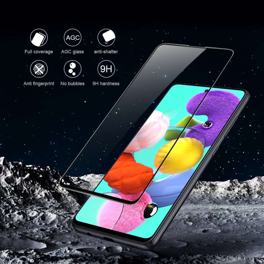 Folia de sticla 111D special conceputa pentru Samsung Galaxy A51 este confectionata din sticla securizata si acopera in intregime display-ul telefonului, chiar si marginile telefoanelor cu ecran curbat.