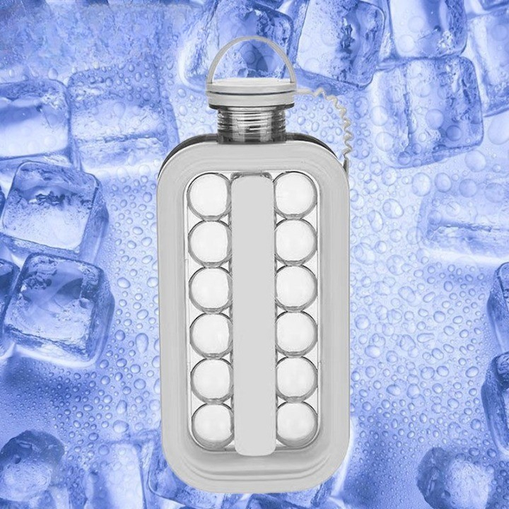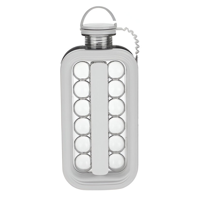 Forma pentru Gheata 2 in 1 Portabila, , Tavita de Gheata sub Forma de Sticla, Sfere de Gheata, Diametru 3 cm, Multifunctional, 17 Bilute de Gheata, 27.5 x 11.4 x 5.5 cm, Culoare Alb