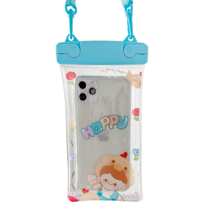 Husa subacvatica Fruity Waterproof , Snowproof, Universala, Impermeabila, cu Snur, pentru telefon sau documente, Happy Boy, Bleu