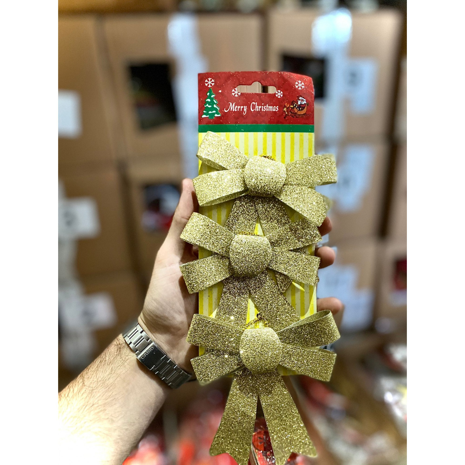 Set 3 fundite pentru brad, Aurii, cu sclipici, 10 x 11 cm, din poliester,