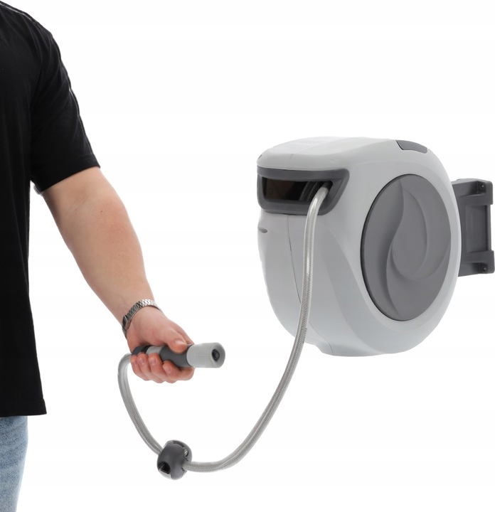 Tambur automat pentru furtun de gradina, 20m, montare pe perete, pivotant, retractabil