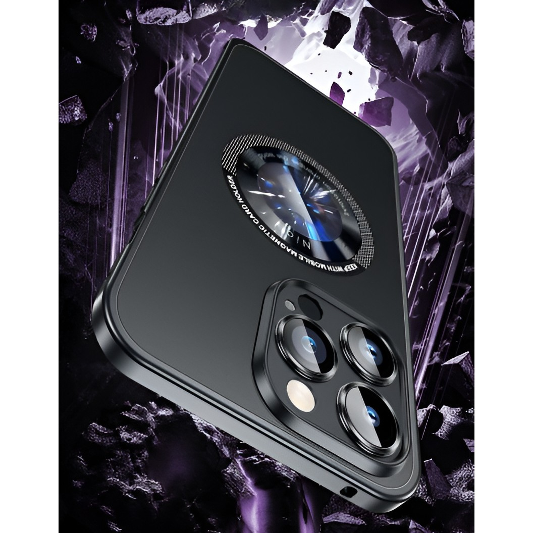 Husa de Protectie MagSafe Compatibila cu iPhone 15 Pro Max, , Carcasa din Metal, Incarcare Wireless, Acoperire Completa, Protectie Camera, Antisoc, Antizgariere, Antialunecare, Negru Metalizat