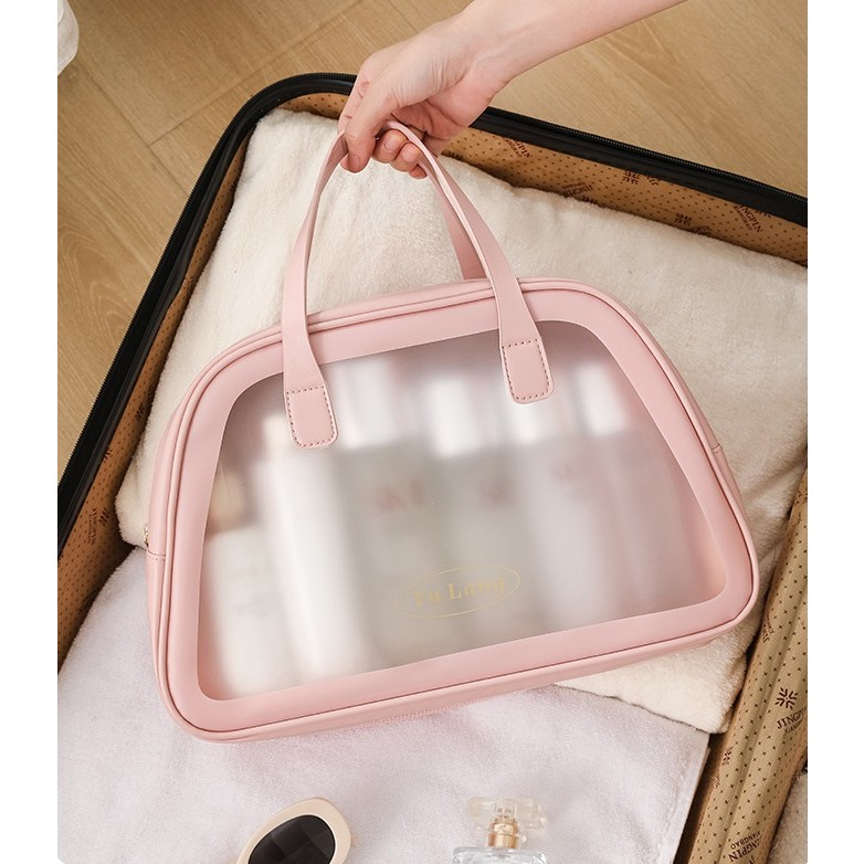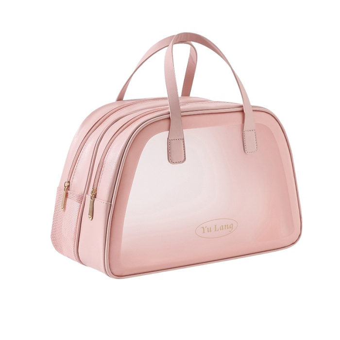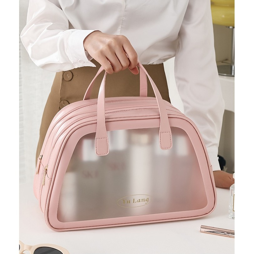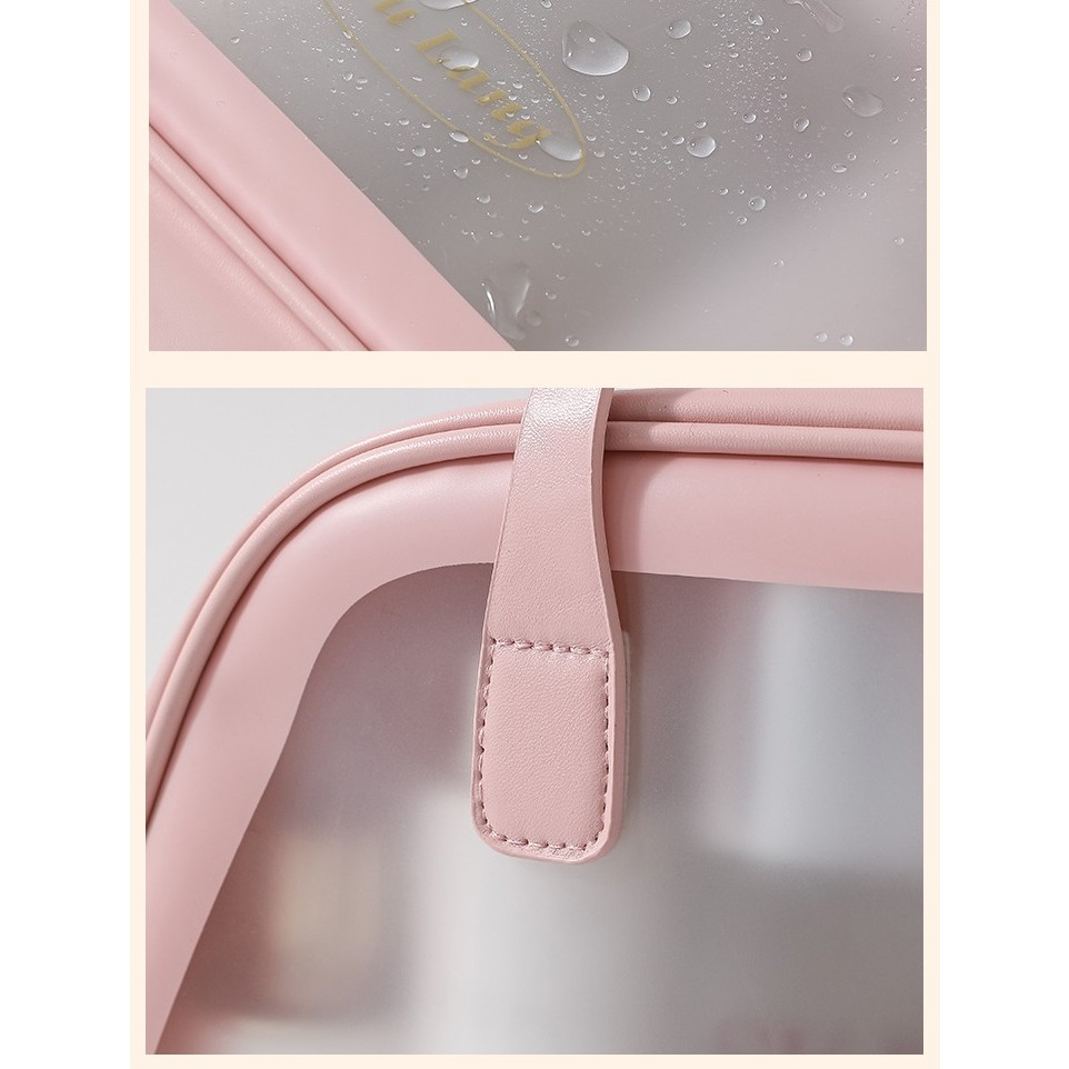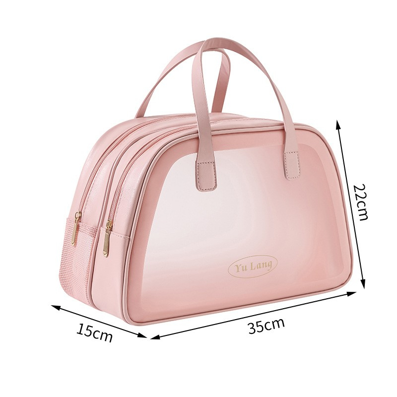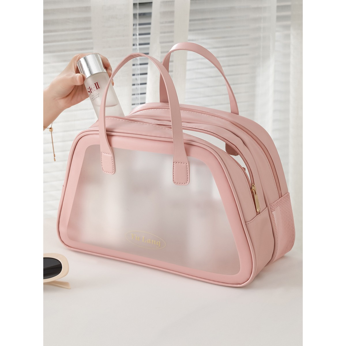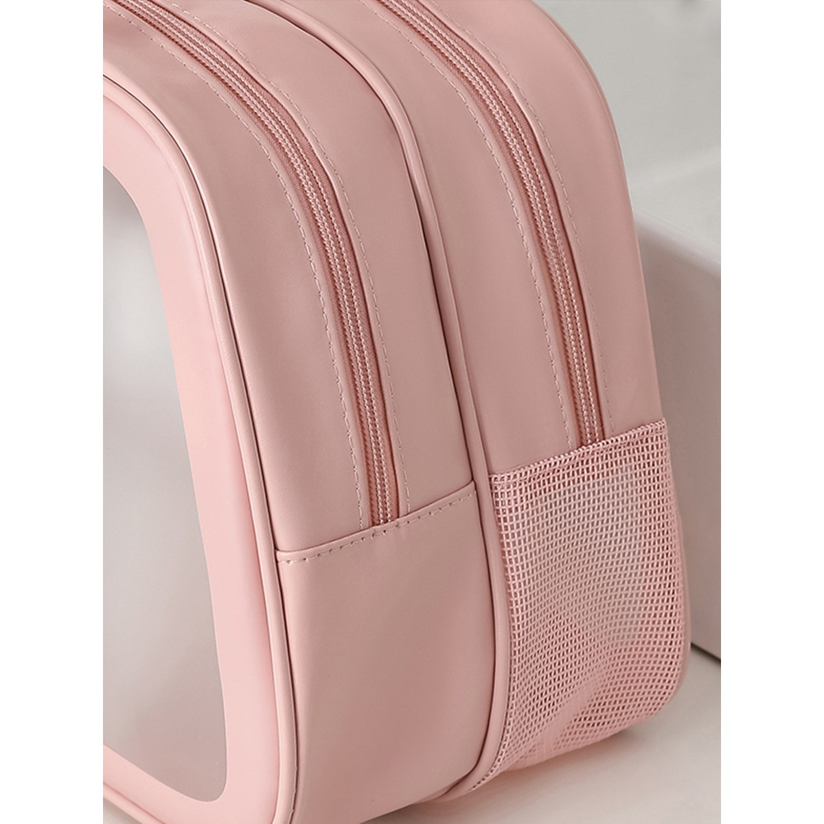 Geanta Cosmetice de Voiaj, , Dubla Compartimentare, Impermeabila, Translucida Mata, 35 x 22 x 15 cm, Roz