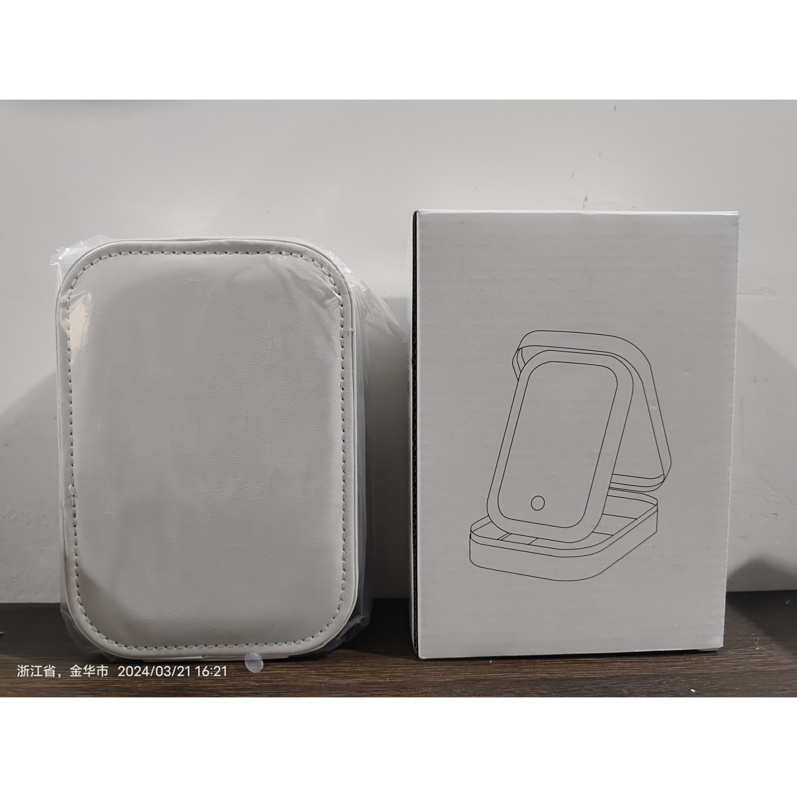 Portfard, , Geanta Cosmetice, cu Oglinda LED, Incarcare USB, Baterie 1200 mAh, pentru Organizarea Cosmeticelor, 4 Compartimente, Imitatie Piele, Alb, 16.5x11.5x6 cm