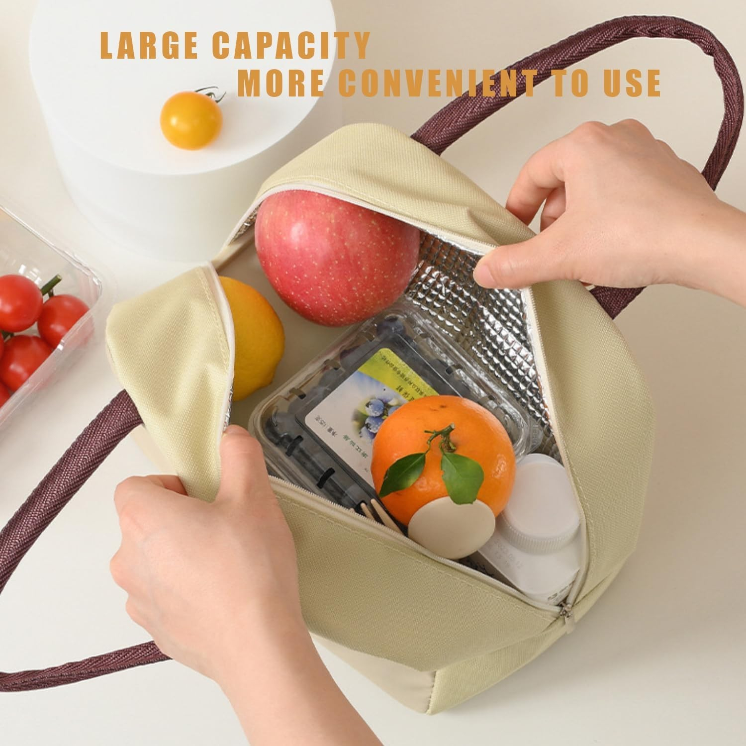 Compartimentare Inteligentă: Geanta dispune de un compartiment principal spațios, ideal pentru cutii de prânz, fructe sau gustări, iar buzunarul exterior permite păstrarea ușoară a pachetului de șervețele sau a altor mici accesorii.