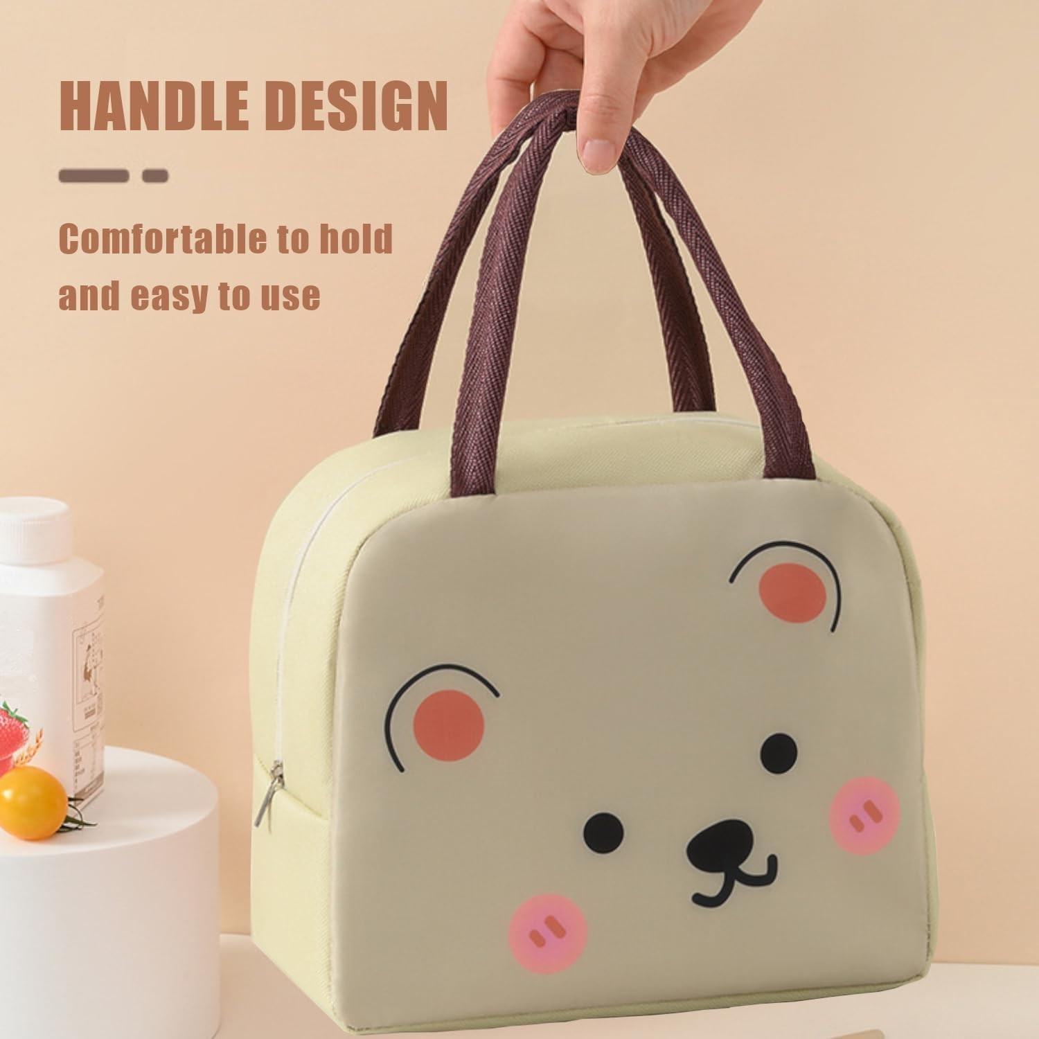 Dimensiuni Optime: Cu o dimensiune de 22x14x19 cm, geanta este suficient de spațioasă pentru a adăposti toate bunătățile necesare unui prânz sănătos, dar și ușor de purtat de către copii.