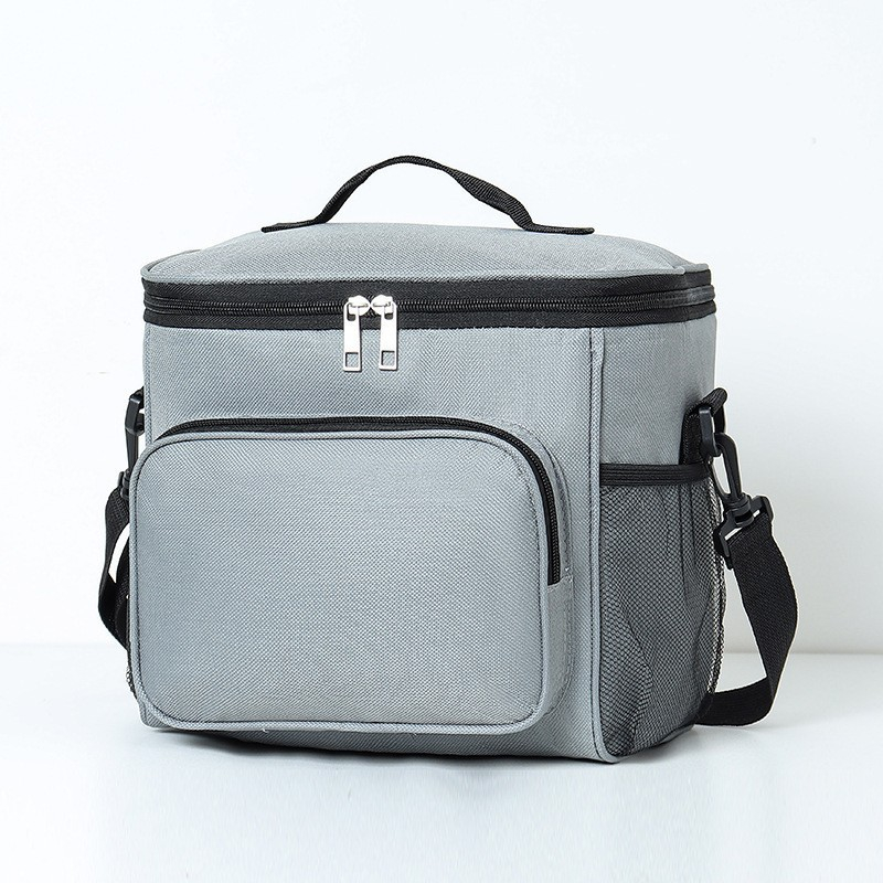 Geanta pentru Pranz, , Multifunctionala, Compartimentata, 2 Tipuri de Manere, Impermeabila, 26x24x17 cm, Gri