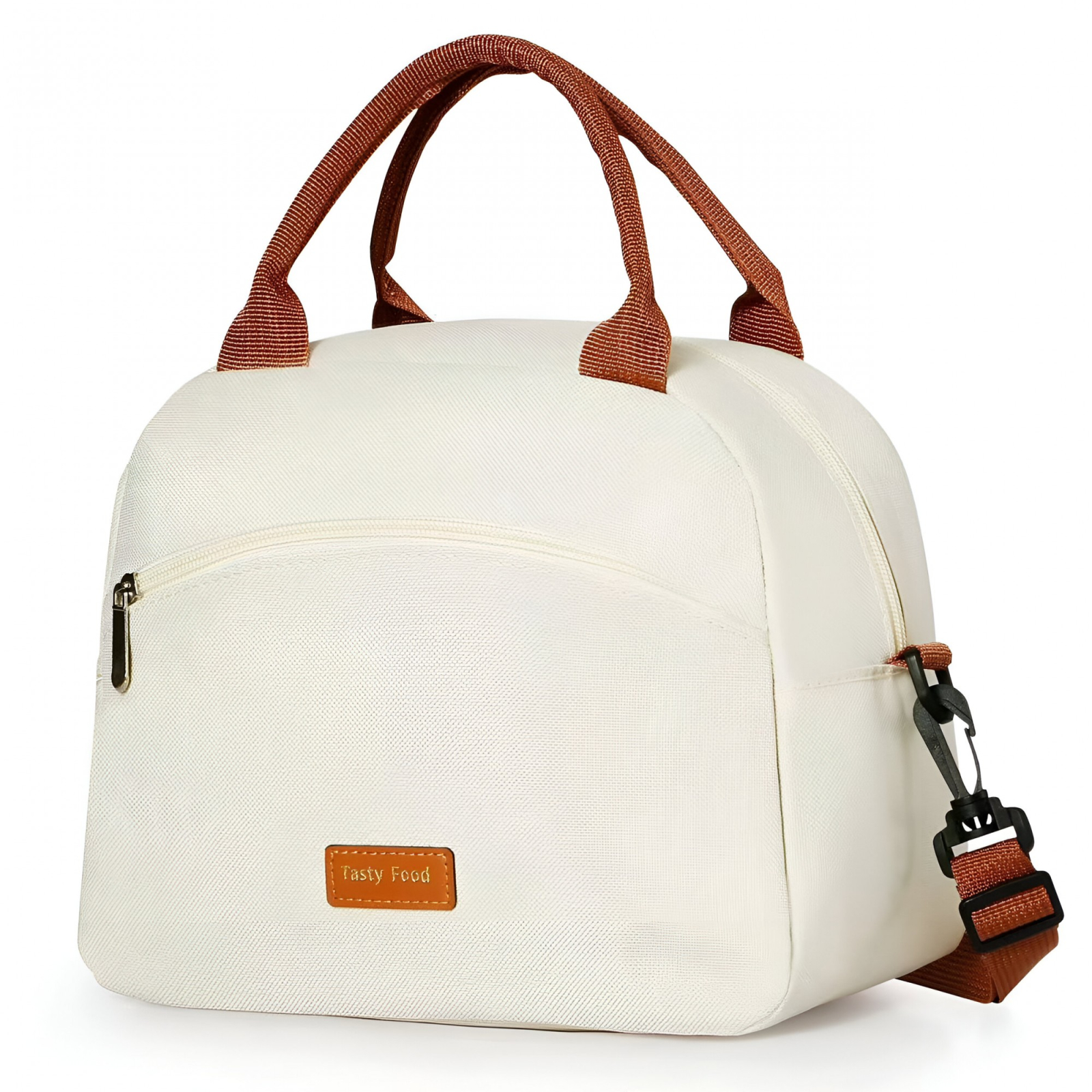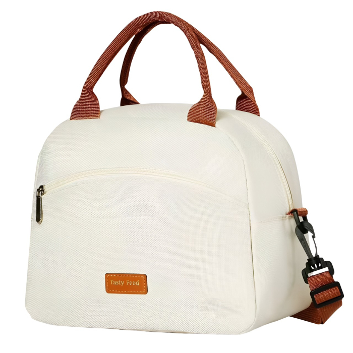 Geanta termica pentru pranz , multifunctionala, compartimentata, impermeabila, 2 tipuri de manere, 26 x 14.3 x 21.2 cm, Crem